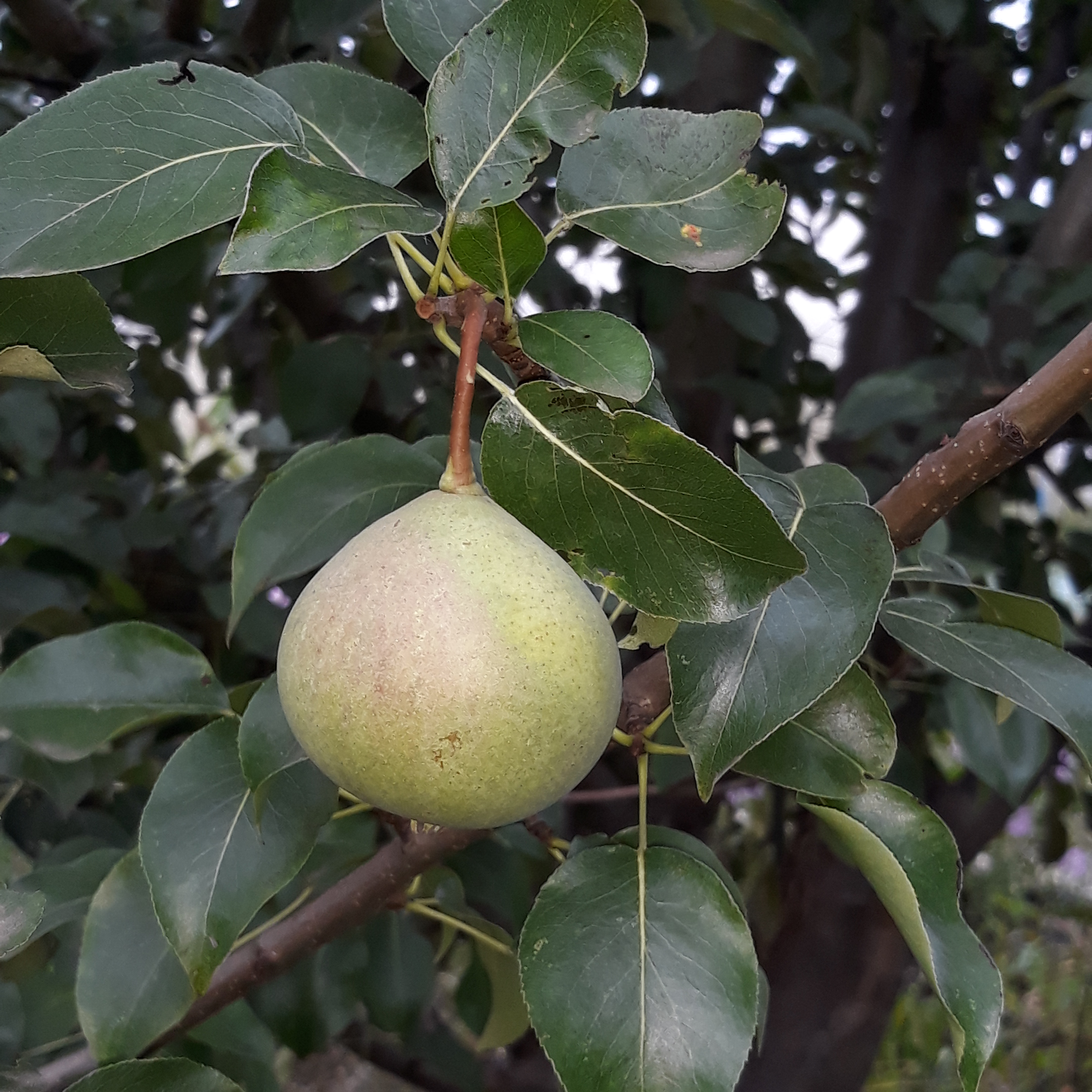 Последняя грушка так и не определённого сорта (черенок брал как Конференцию).Хранились в холодильнике,на сегодня есть увядание.Хрустит как кочерыжка,сладкая,сок присутствует,терпкость совсем не исчезла.Потенциал хранения превышает все опробованные отечественные сорта с Талгаркой.С айвой совместима,партенокарпична.Растёт с 2016 отдельным деревом,высотой не более 1,5 м,грузится ежегодно.