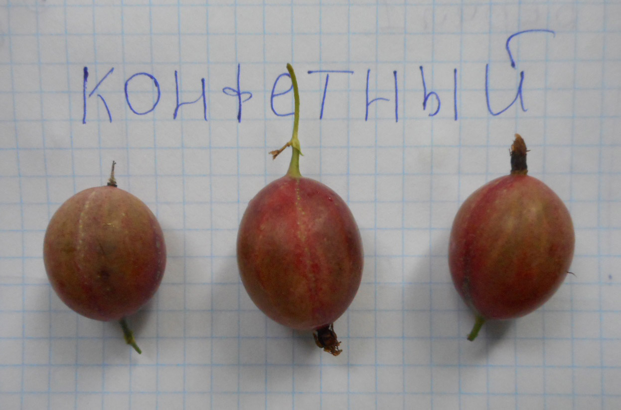 Roza, у Конфетного есть ряд признаков ягод по которым вы определите сорт: редкое железистое опушение,жёсткая кожица,специфический вкус в сторону сладкого,поздний срок созревания( у меня где-то через неделю созреет)