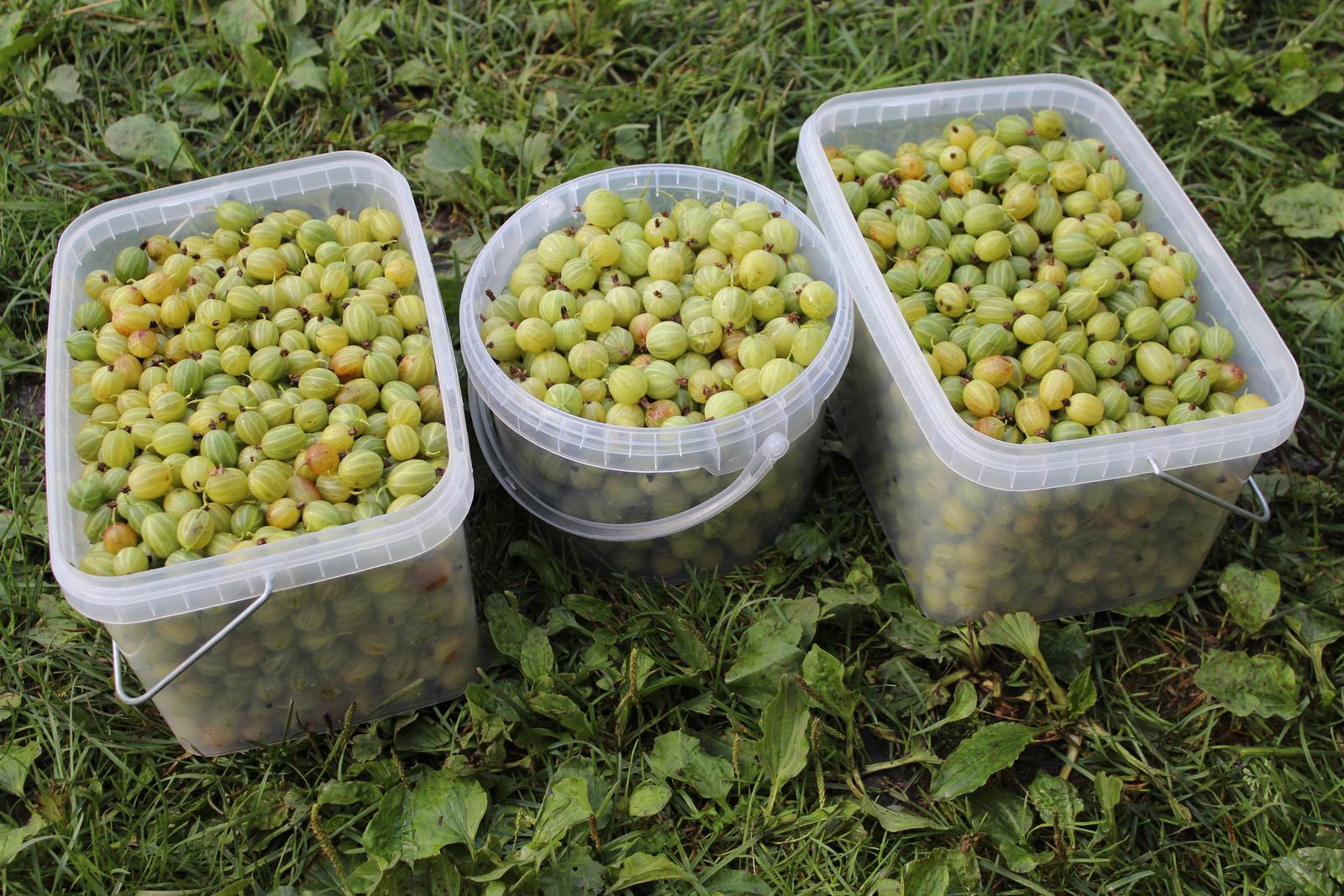 Битва за урожай в разгаре. Пока не получается добить хотя бы один куст Уральского изумруда. Был первый сбор - 3,5 кг, сегодня еще 2 контейнера 5,8 л. В них примерно 3,5 кг ягоды по прошлому году помещалось. Итого 10.5 кг. И еще порядка 3-3,5 кг осталось. И еще один куст на очереди