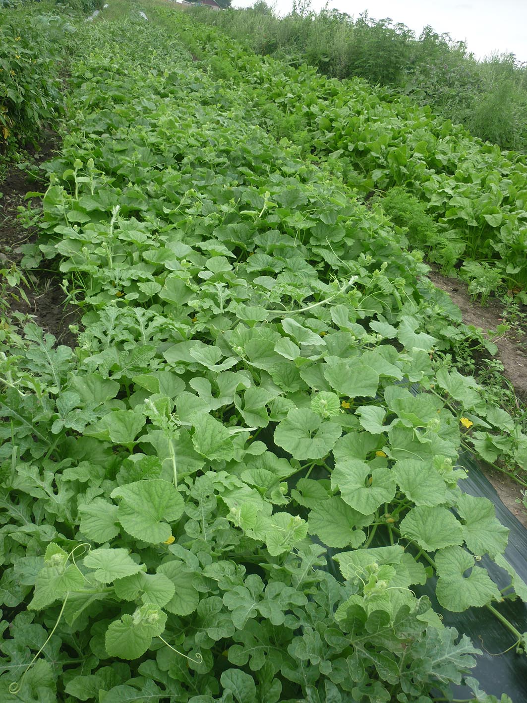 По поводу замокания--планирую попробовать сделать из рабицы своеобразный матрасик и сделать бахчу не полем,а грядками для возможности укрытия,хотя повторяюсь---считаю что посадка на пленку существенно помогла растениям выживать в условиях большого количества влаги.