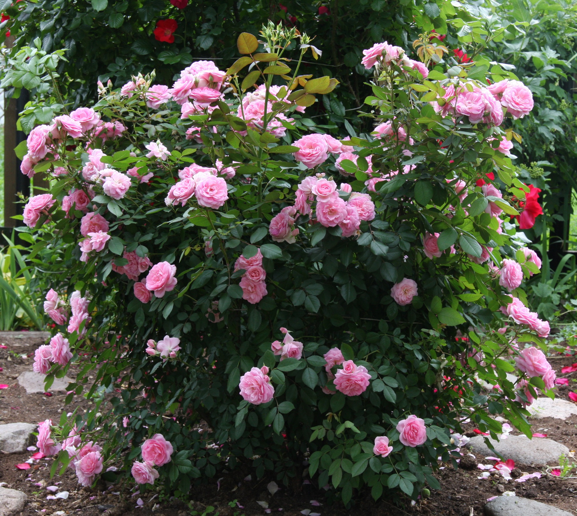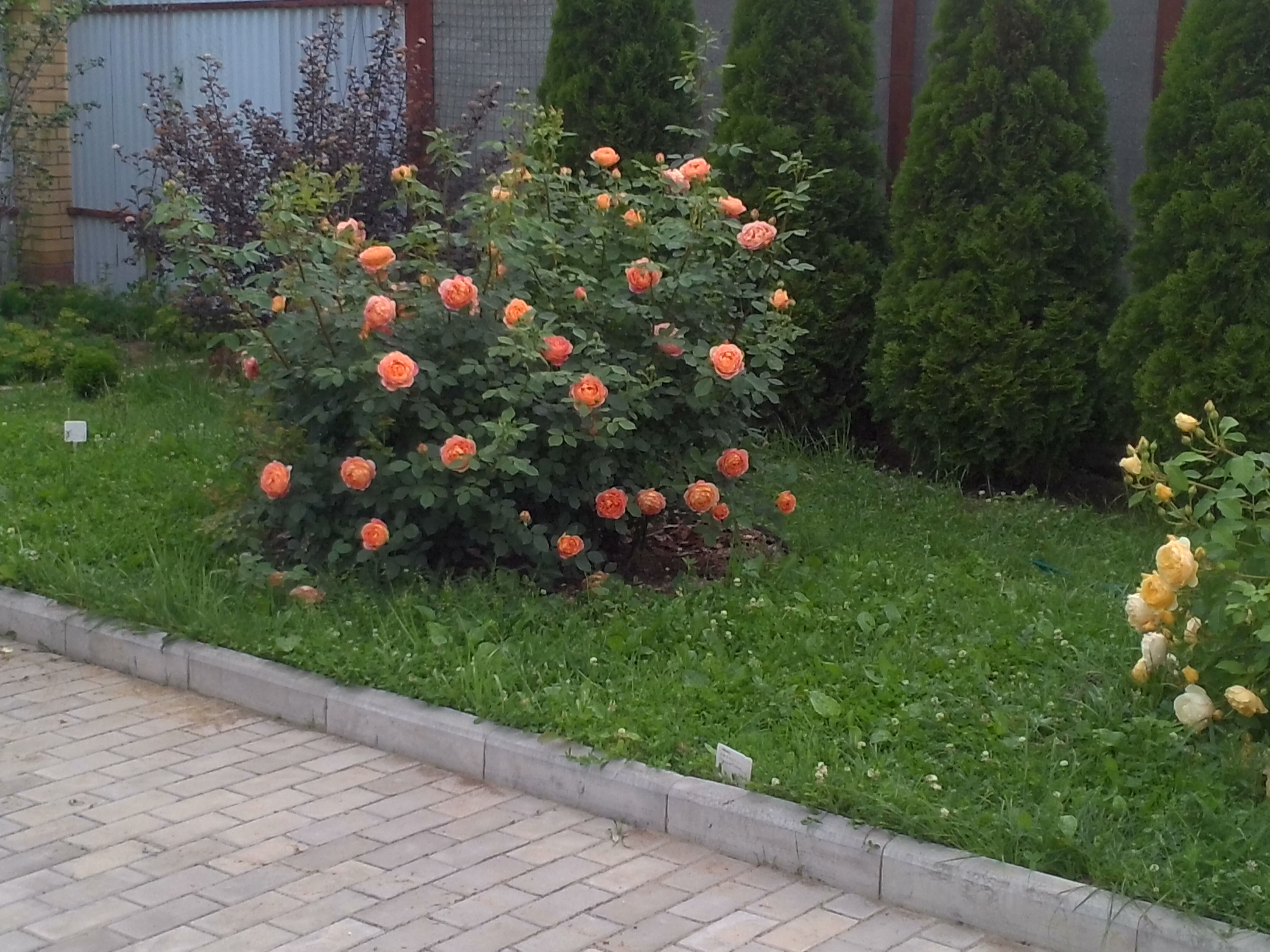 Начала цвести Uetersens Rosenkonigin, хотя я думаю, что это Uetersens Rosenprinzessin... судя по цвету.