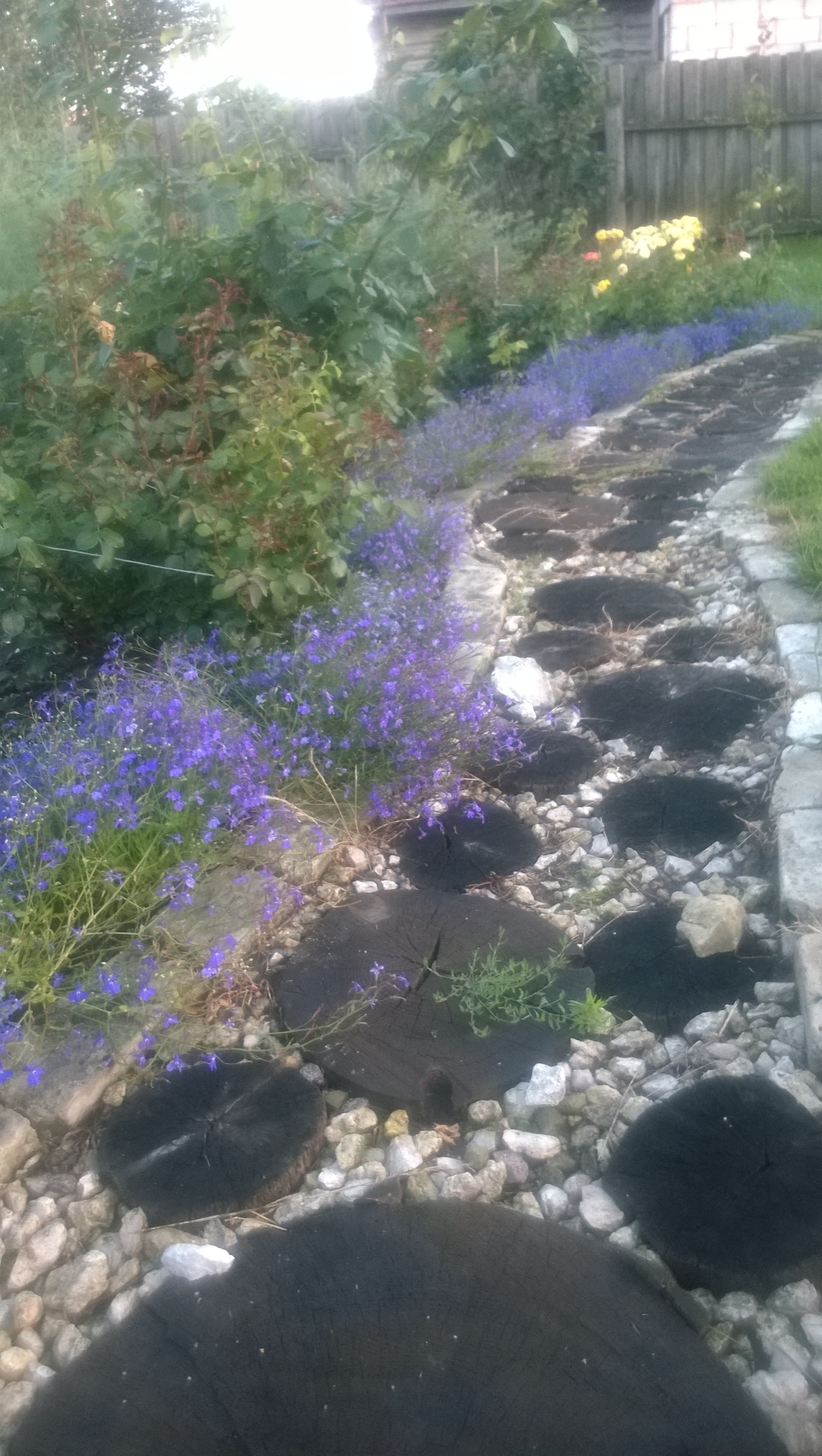Пока розы набирают силы для второго цветения, старается во всю лобелия :-) . Дожди поспособствовали ее росту. Вот такой бордюрчик для роз получился. Голубой цвет оживляет весь сад.