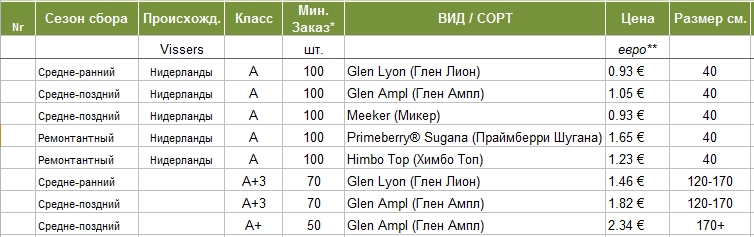 Лена, напиши курс по которому оплачиваем малину и земл. от Флевопланта.Елена В А писал(а):По малине. Цена без изменения. Этот прайс в силе. Но в пучке будет по 25 штук.