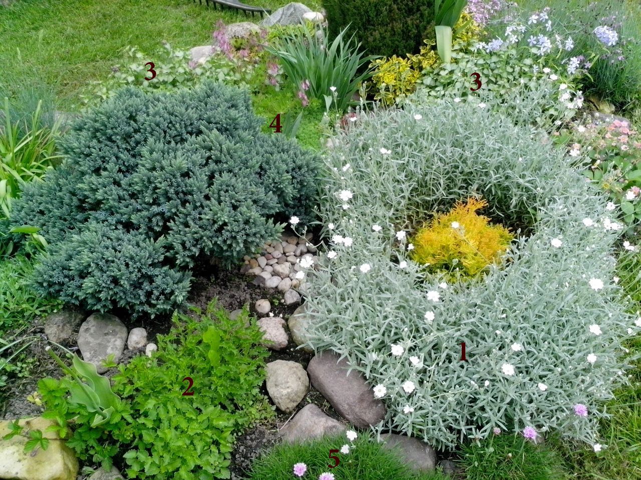 Из седых есть ещё лихнис корончатый.Чтобы был аккуратненький,у него убирают цветоносы.Но можно и оставить,кому реденькие цветочки нравятся.Он многолетний(в наших сибирских условиях малолетник,чаще двулетний)Насевается, если оставлять цветы