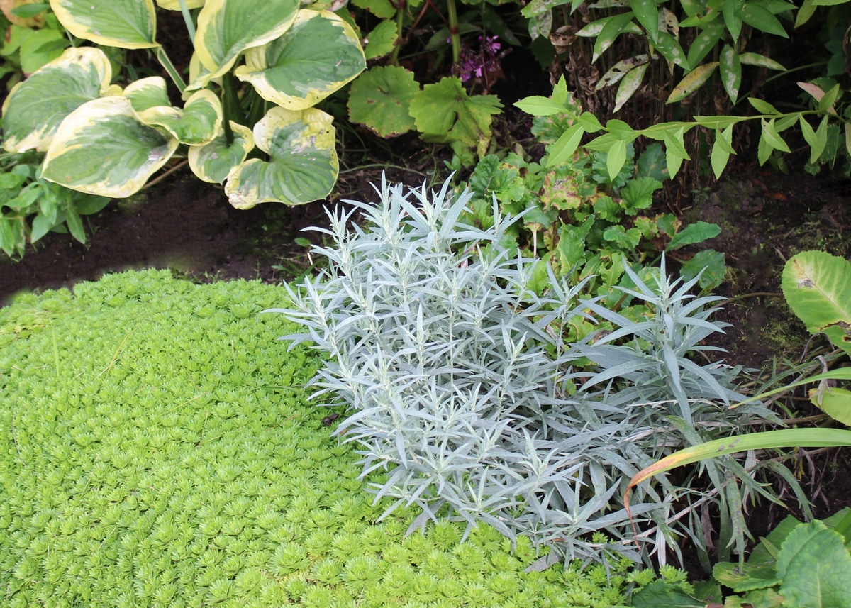 Полынь Портеншлага есть, да дылдиной растёт. Стригу. Но один раз она у меня упала и макушки поднялись - получилась низкой. В том месте так и позволяю ей падать.