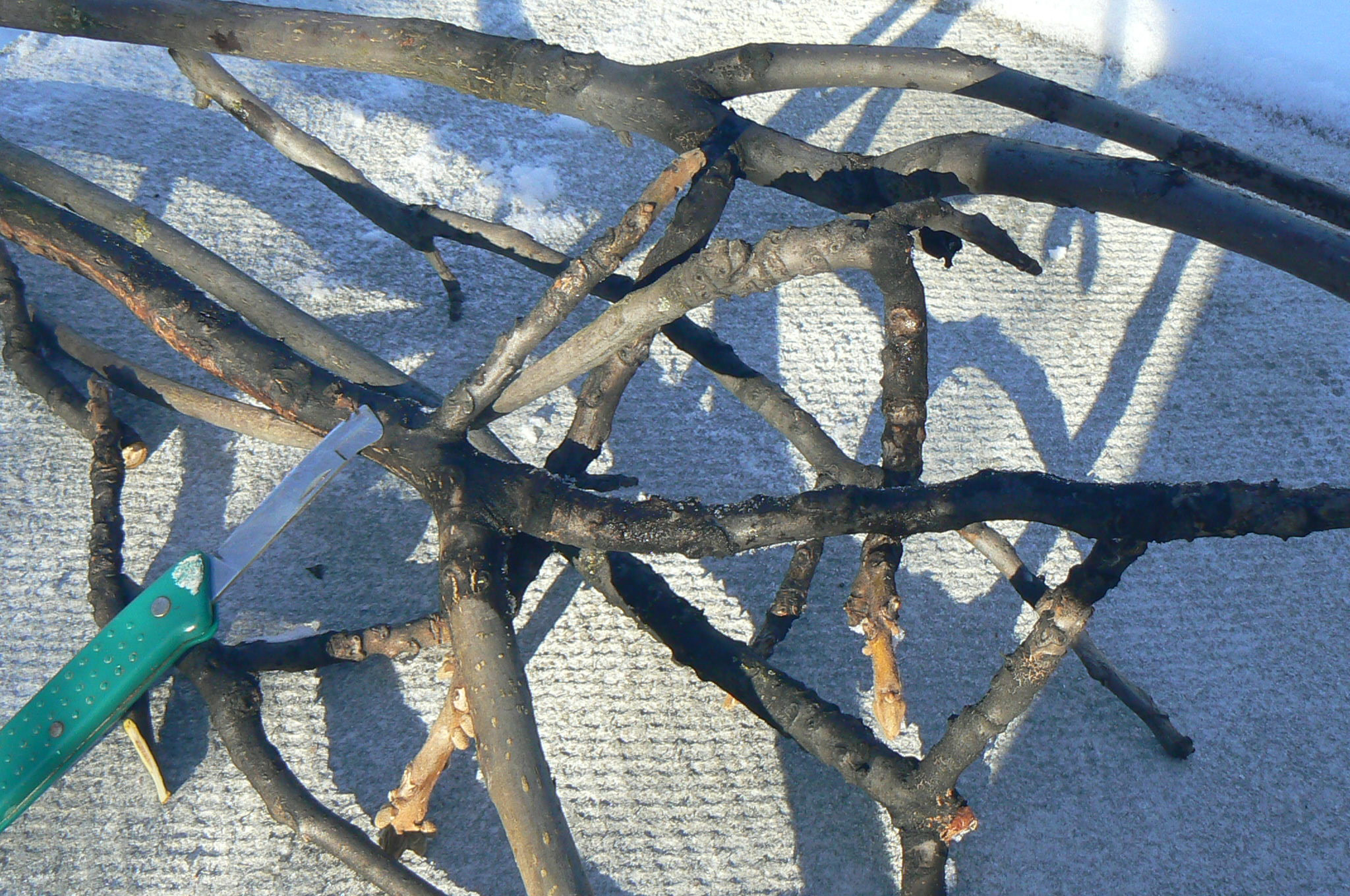Чижовская после обрезки. Академическая. Мелбы молодые. А вот это - к "некрасивому" саду. Больные ореховые приросты прошлого года. Вырезали.
