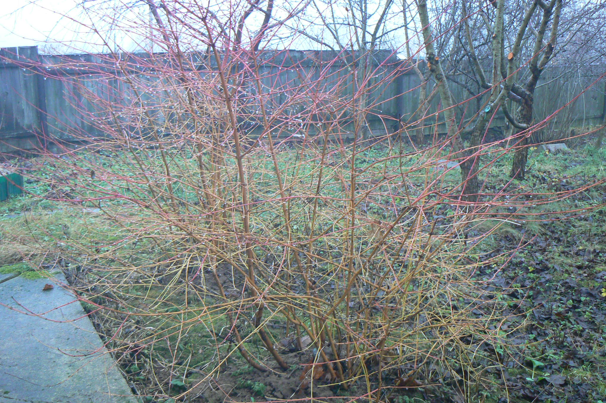 Вот сейчас так они выглядят. раньше нельзя было резать - плоды, любимые птичками, были ещё не съедены. Красенькие кустики вдоль забора. Иногда не вырезаю старые, а срезаю куст у земли. Вот вымерз у меня дерен шелковистый Kelsey после ледяного дождя.