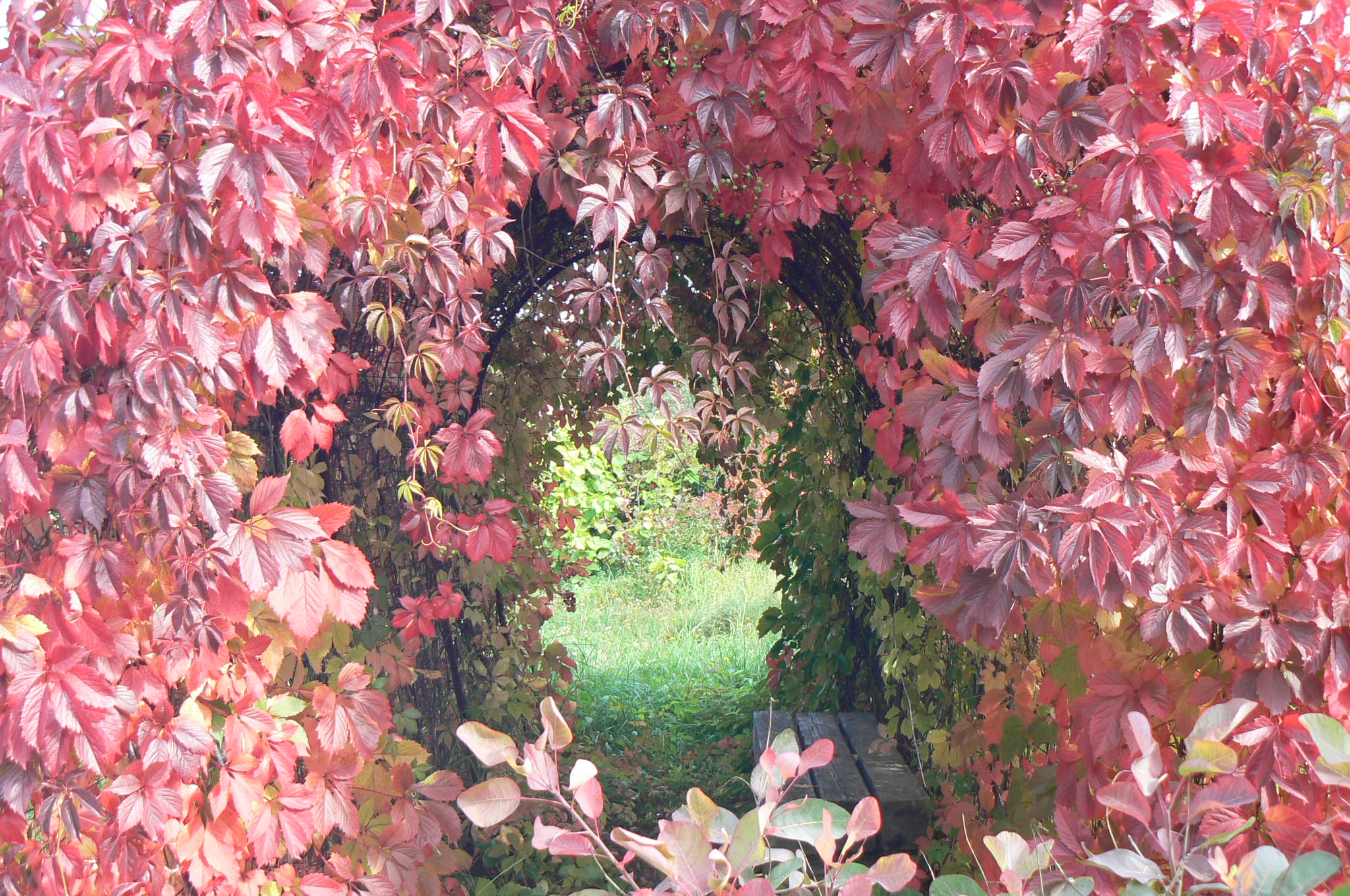 Лен! Как красиво было!!! Ничего не сравнится по осенней окраске с виноградом. Лимонник будет цепляться и на солнышке, у меня в трёх местах растёт. Везде плетётся и падает, как тот виноград. К тому же и поросли много... но много лет спустя. Он очень долго думает. В этом он похож на хвойные, которые года три почти не растут. С древогубцем не сталкивалась. А вот актинидия очень мощная лиана. И стартует уже со второго года. И заполонит она внутренний проход твоей галереи. Не знаю ничего лучше клематисов. Можно же посадить маньчжурские - это в твоём стиле.