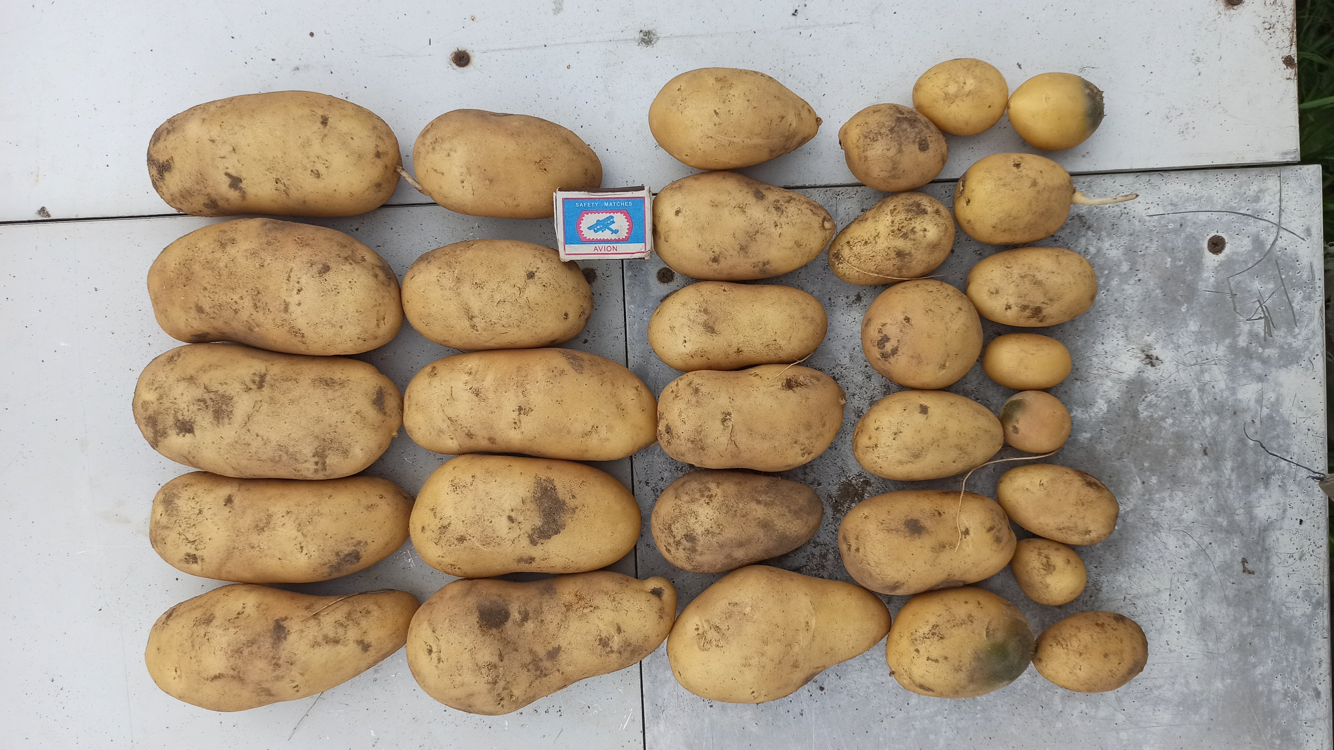 Стало модным сажать картофель в мешки и ящики. Мне тоже захотелось отдать дань моде. Я посадил картофель на боровок, но выделил на куст большую площадь освещения, площадь питания увеличивать не имеет смысла тк корневая система картофеля небольшая. Сорт выбрал для опыта Королеву Анну которая завязывает много клубней, но они не крупные, как я люблю. Основные посадки были по схеме 90Х20-25, а на опытном участке 90Х60. Урожайность оказалась примерно одинаковая 8кг/м2, что очень странно. Теоретически на экспериментальном участке она должна существенно упасть. Размер самого большого куста на экспериментальном участке достиг массы 5,7кг, а самый маленький 3,4кг.