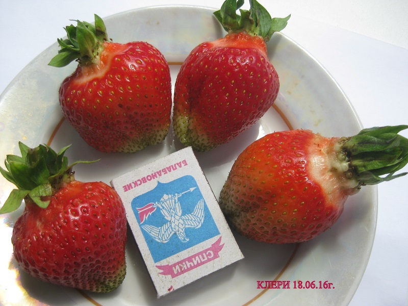 Рязанцы хвалятся своей земляникой.В текущем году погодные условия сместили сроки созревания по многим культурам, в том числе и по землянике. Одновременно зреют ранние и среднепоздние сорта. На фото ранний сорт Клери и среднепоздний Царица.