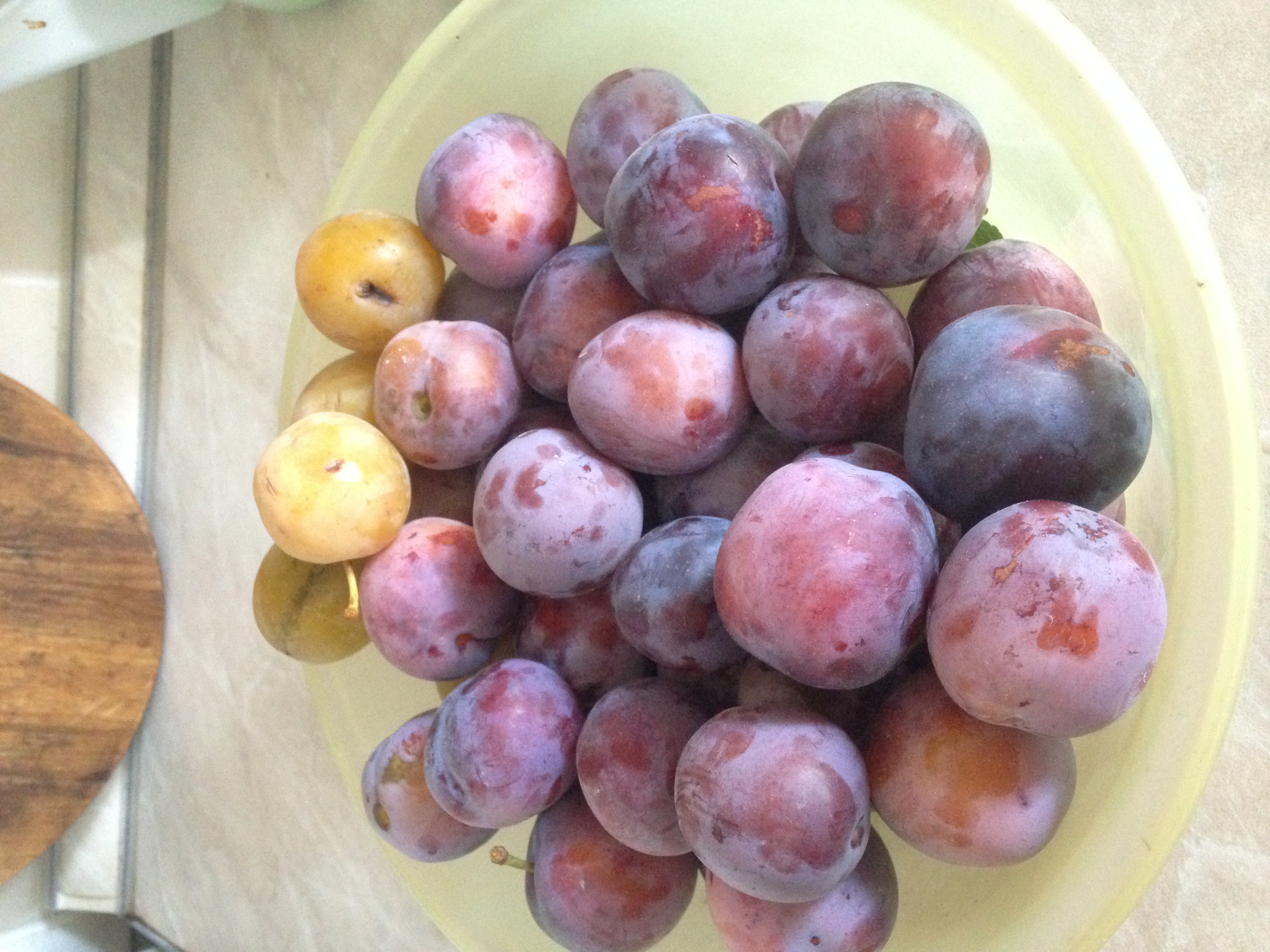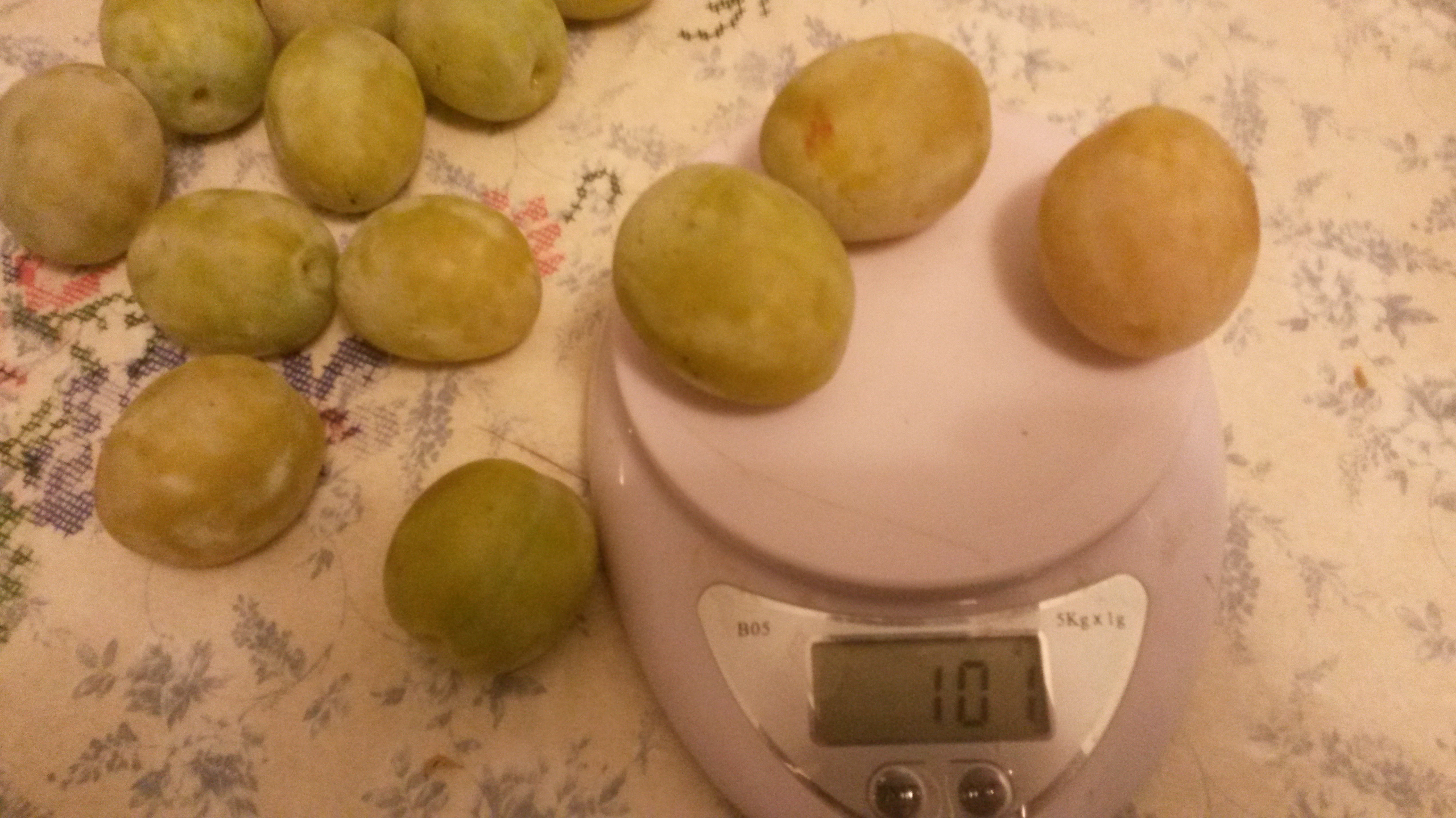 Сбоку в чашке положила несколько штук плодов сливы Светлячок, эти сняли дней 10 уже как и бродят уже во фляге. Плоды ну очень некрасивые и вкус средний, если только - на безрыбье.. а дерево сильно раскидистое само по себе, вообщем, недовольна..прям, хоть убирай.
