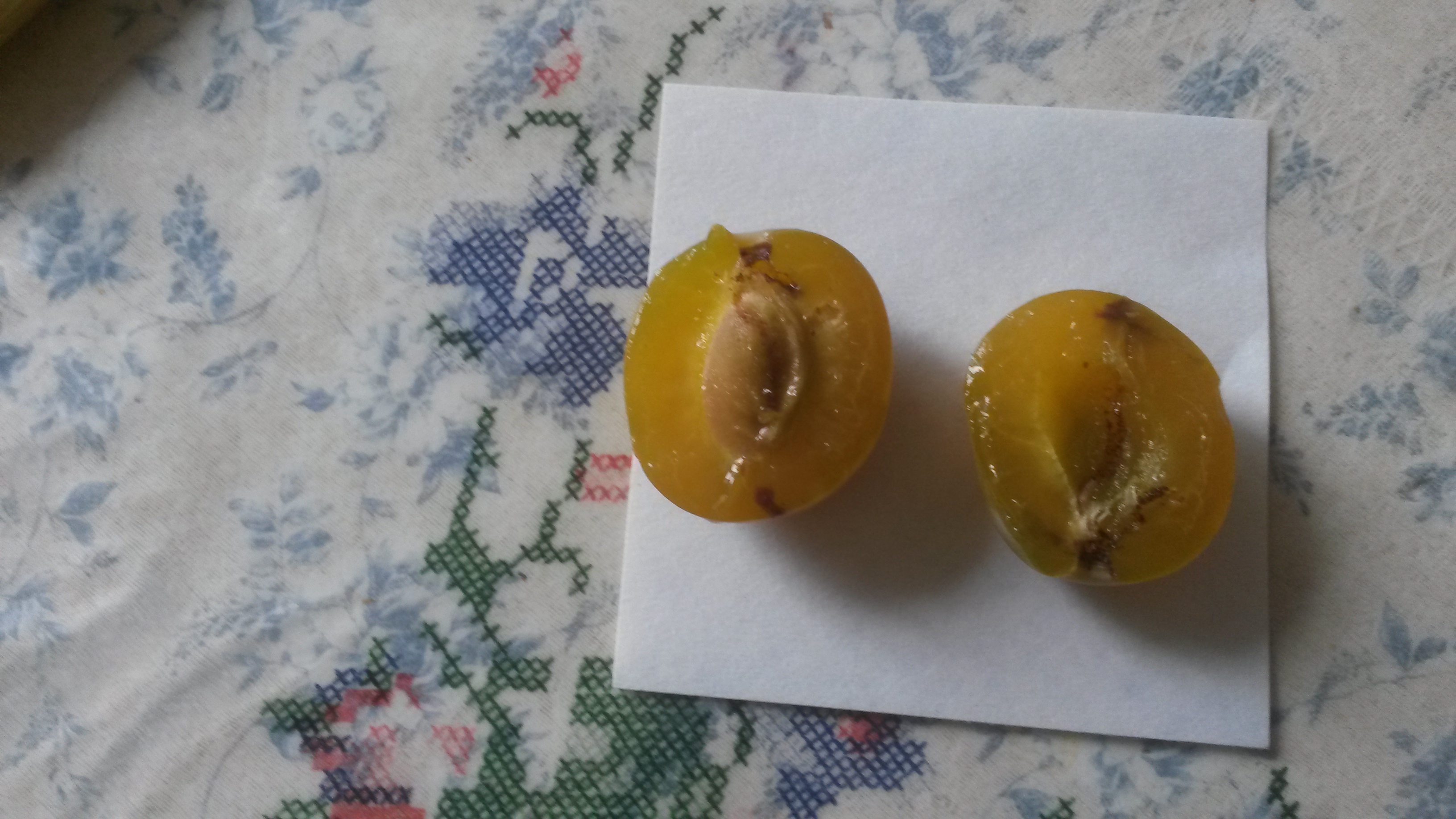 Вкус набирает неплохой, крону, действительно, надо сдерживать. Внешне дерево чем-то напоминает мне алычу 2-28, наверное, своим стремлением ввысь, плоды крупнее. Урожай в этом году поменьше прошлогоднего, но вполне приличный, подмерзаний не замечено.