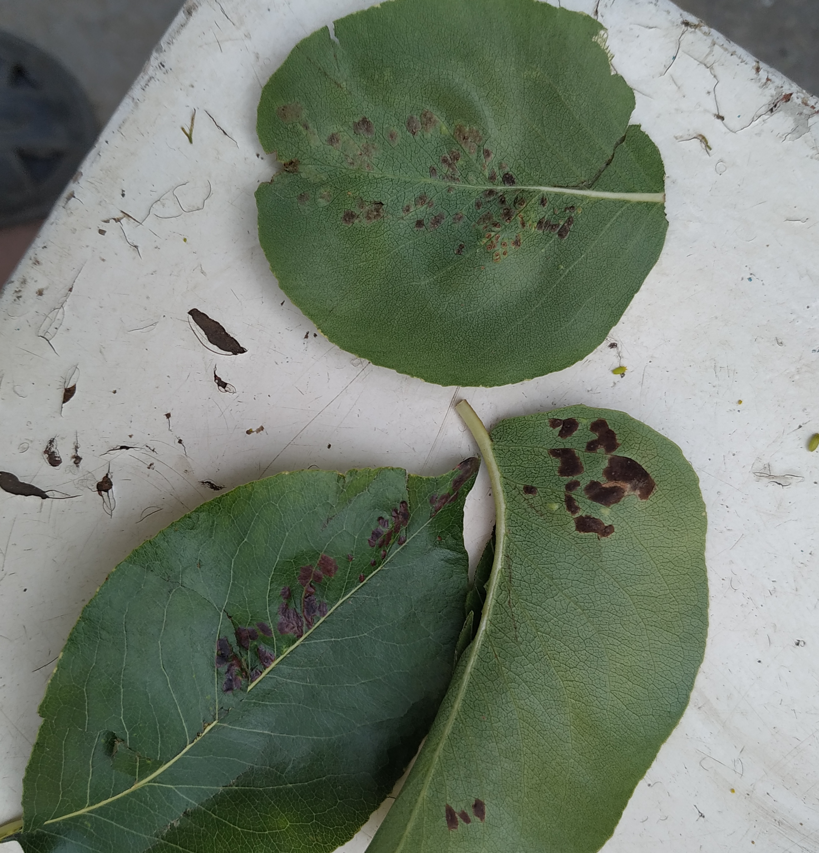 Советую от пятнистости опрыскать Гамаиром(грушки, ведь, есть). А по самкам галлового клеща, которые сейчас перебираются к почкам на зимовку из галл, Биокиллом.