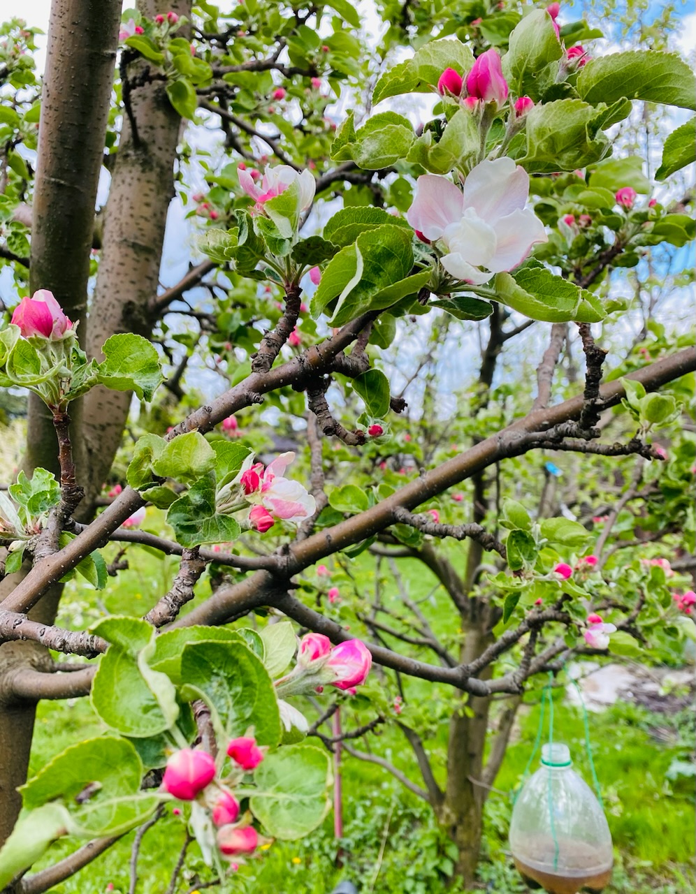 Более северным садам «повезло» немного больше. В моем саду яблони не начали цвести до майских ночных заморозков. Следующая ночь будет +3’С и далее теплее.