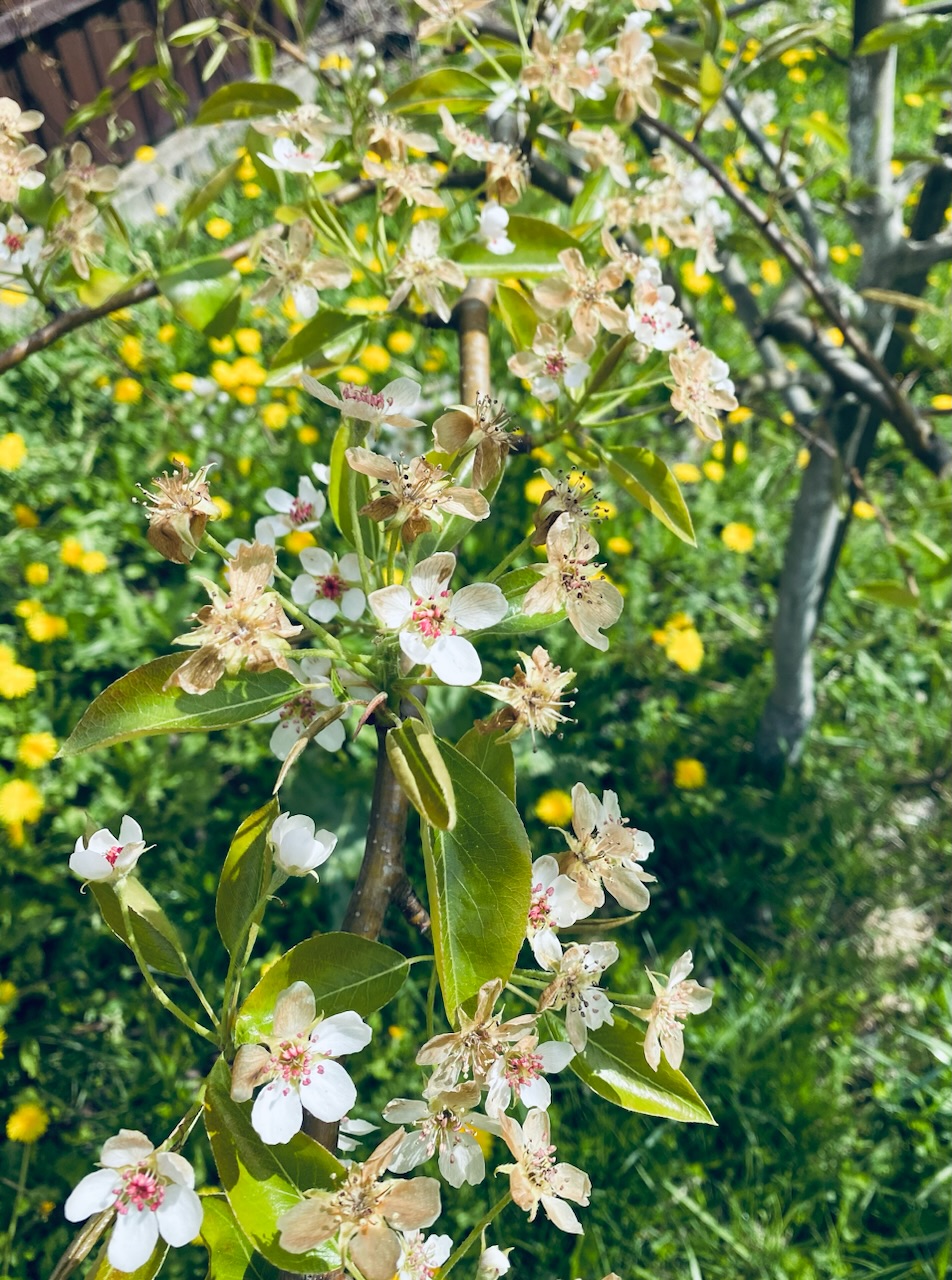 Мне думается, что в нынешней ситуации в более выигрышном положении оказались груши-многосорты. Если некоторые сорта действительно серьезно пострадали от заморозков во время цветения, то вся сила корней достанется остальным привитым сортам. У меня первыми, как обычно, начали цвести сорта с генами УГ - Красуля, Талица, Праздничная. И, как ни странно, Паттен. Европейские сорта ушли от заморозков и только начинают распускаться.