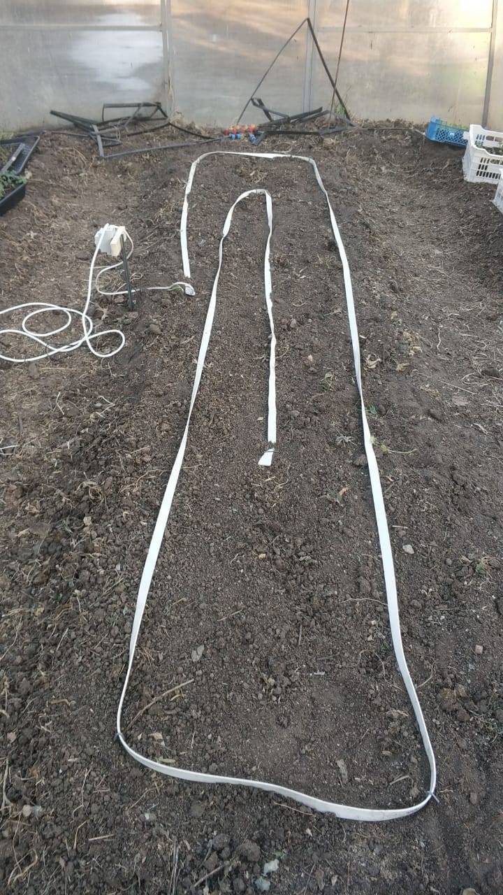Положил ленту на землю, накрыл сверху старыми железками (чтобы лучше распределялось тепло), на железки доски. Все укрыл сверху пленкой.