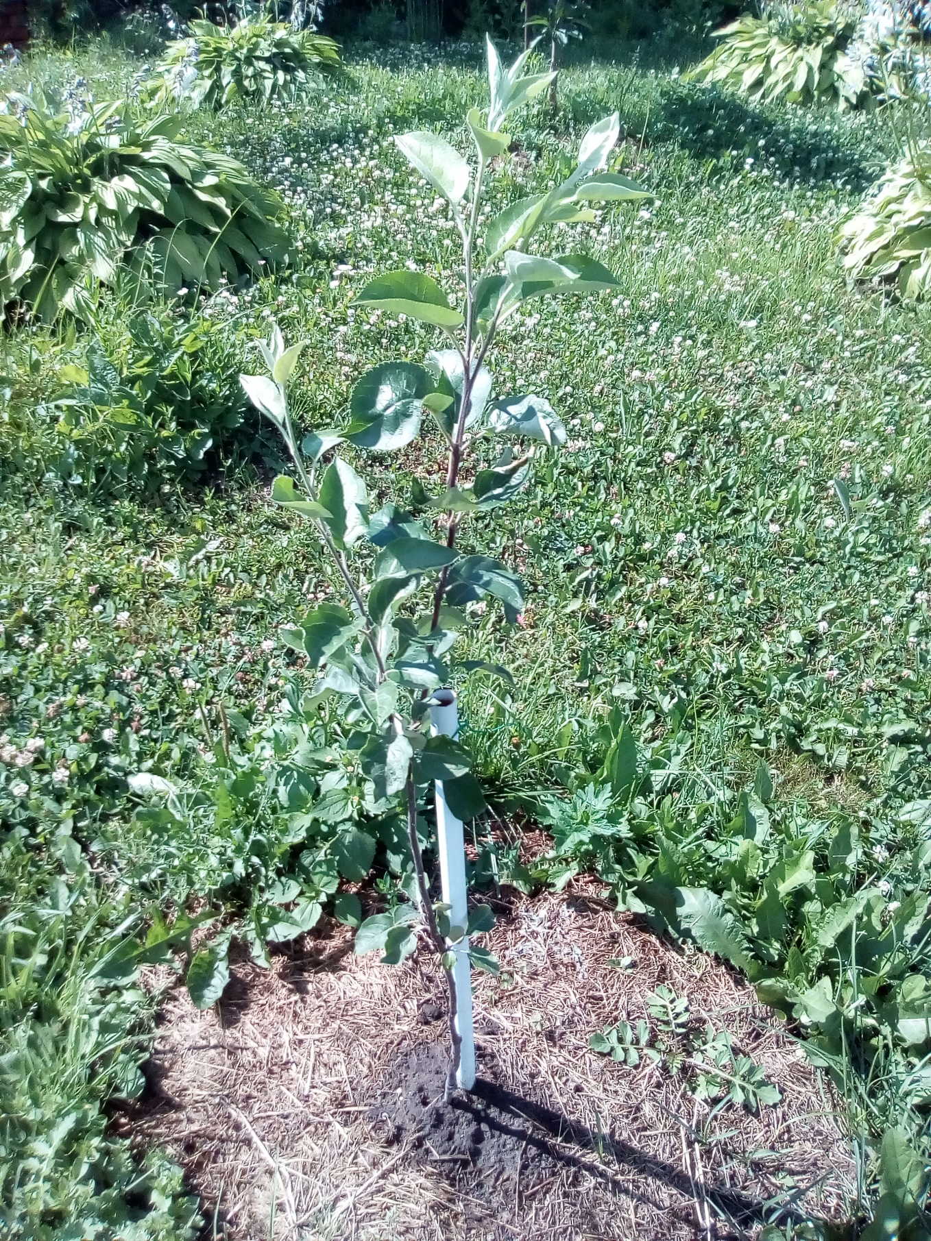 Энтерпрайз, вымахал прилично, с хорошо сформированной кроной, но радовать плодами пока не торопится, то-есть сорт явно не скороплодный...