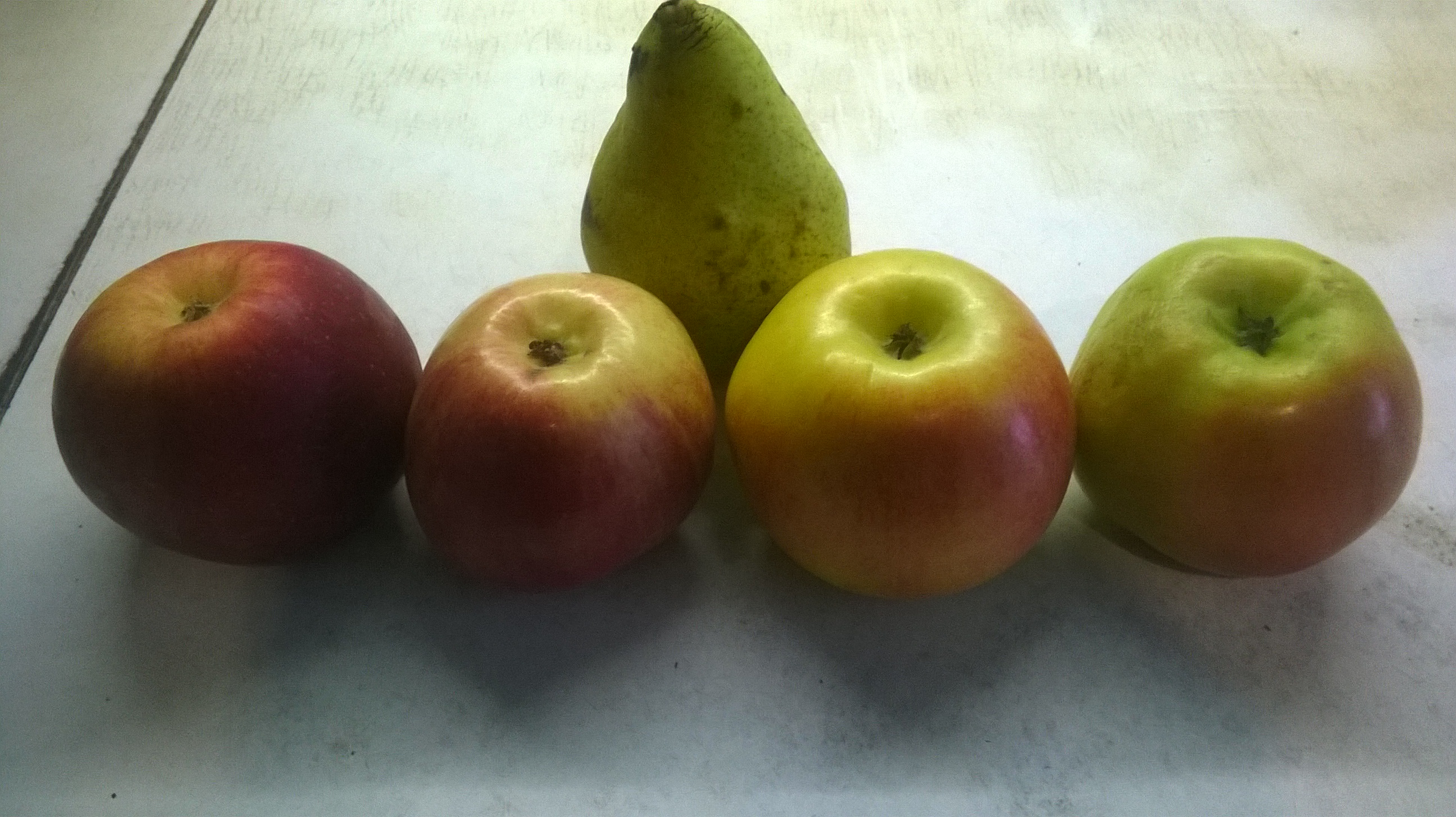 Подсказка: Сорта яблок бел. селекции. Груша- нет. Но решил оставить её на фото, больно красивая :-) .