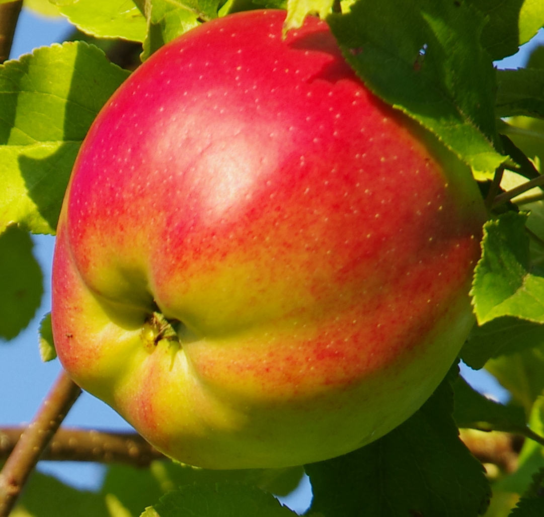 В тени яблоки попадаются зелёно-желтоватые - нехарактерной окраски. Характерная окраска - золотая.
