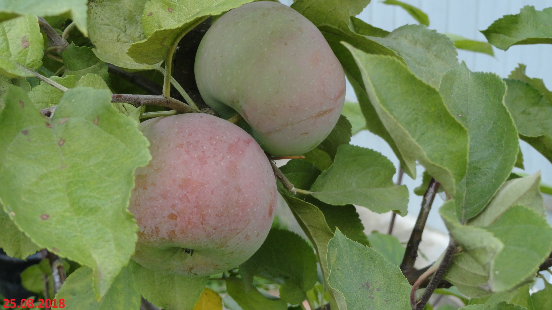 То, что яблоки не набирают цвет, заметил еще в июле. В начале августа начал отслеживать эту пару абсолютно зеленых( в эту пору!) яблок сорта Алеся