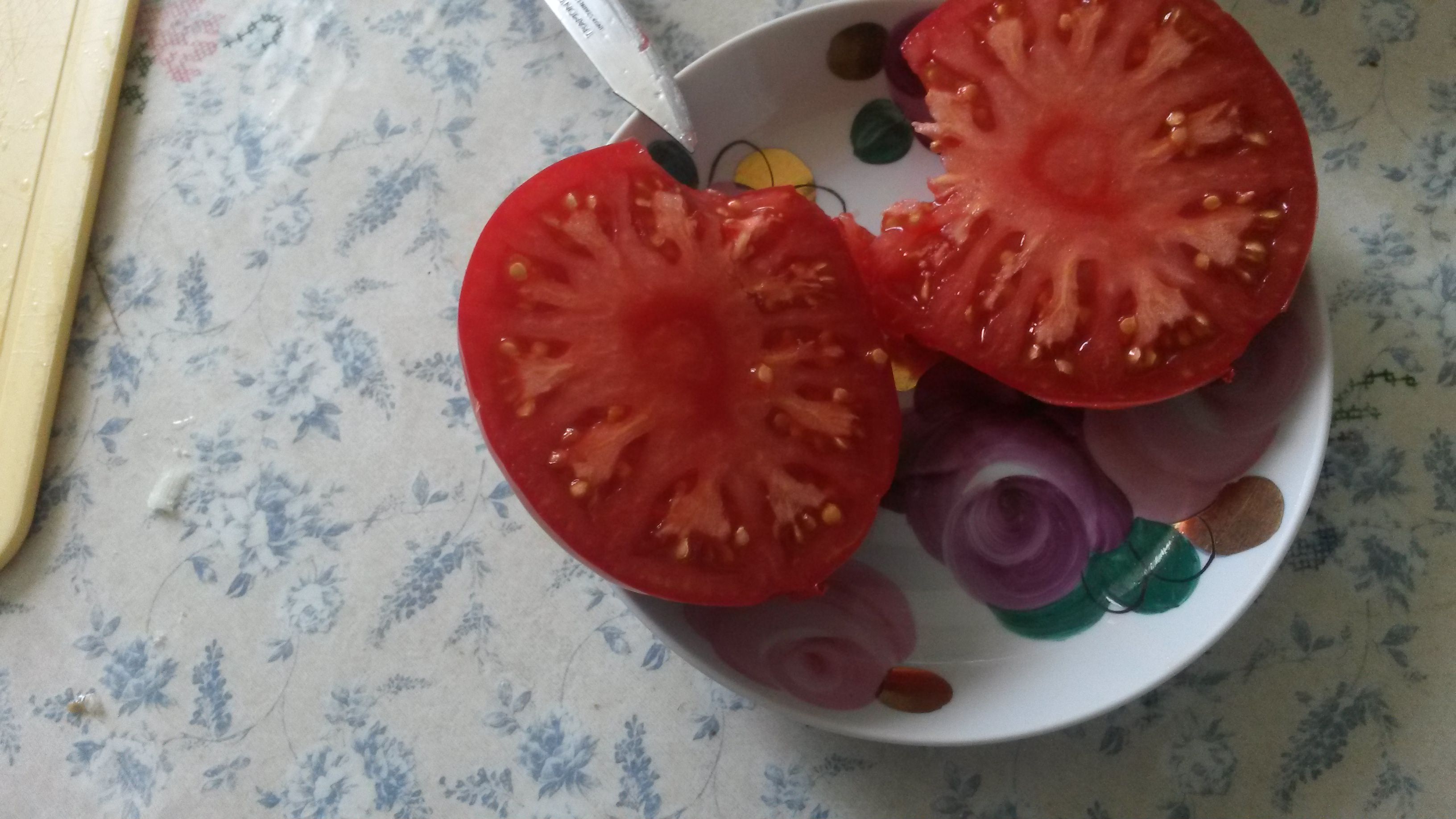 tep, Борис, вот офигенный томат Ваш Пудовик. По другому не скажешь. На разрезе вообще чудо - одно сплошное мясо. Приятно и в руках подержать, и к столу подать. Семян мало. Оставила полпомидора на семена - 10 семян наковыряла. Борис, спасибо за семена. ! :-)