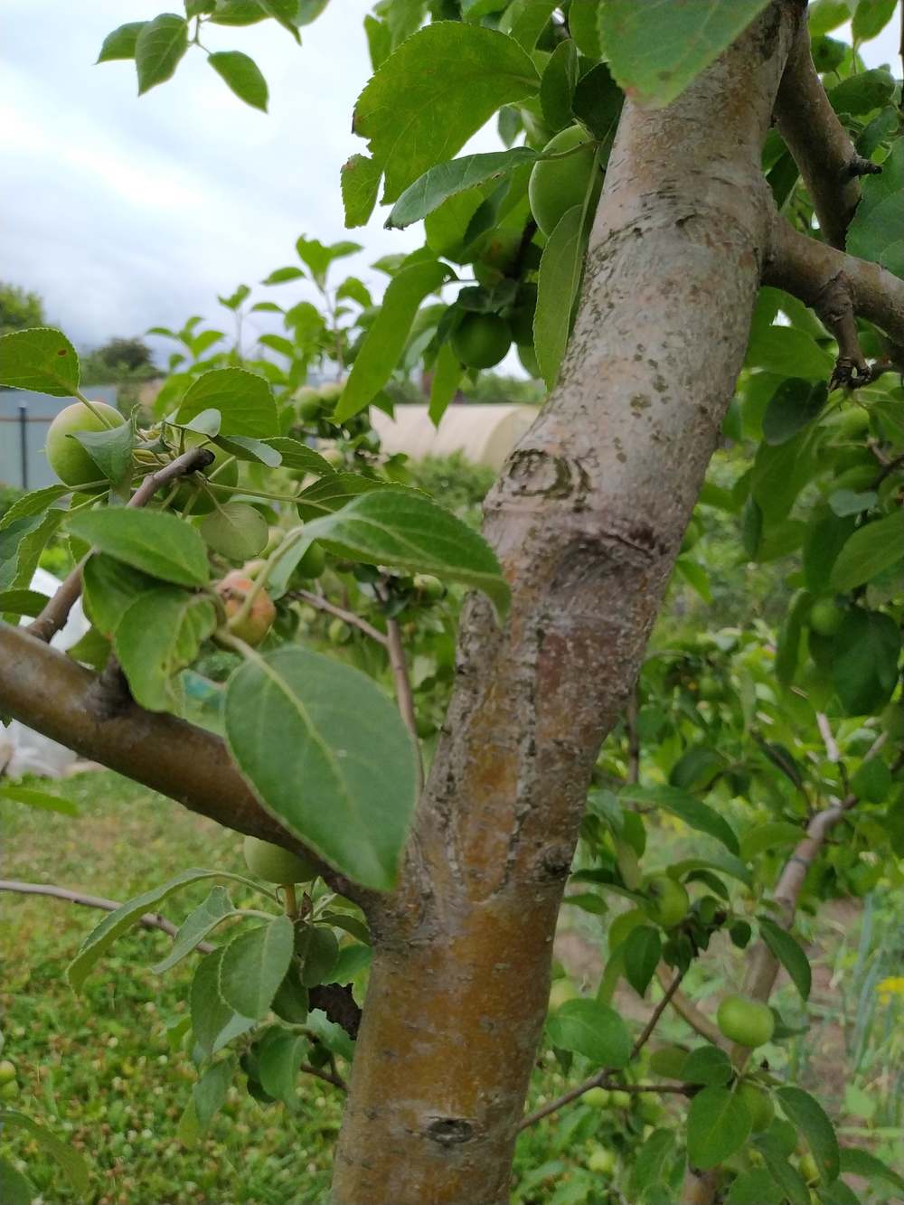 Кто ж знал,что несовместимость такая.Поначалу все было красиво,вот этот наплыв появился на второй год.Не отпиливать же.Оставил расти до естественного завершения событий.По-моему логично.Оставшиеся ветки сейчас буду использовать для прививок.
