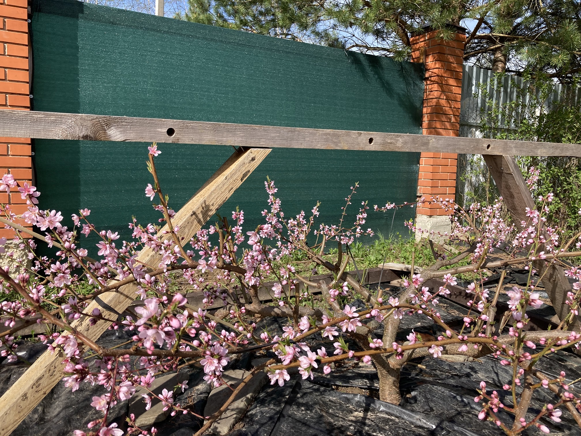 Первым зацвел Саратовский Поздний на местном клоновом подвое (Слива Карзинская+Вишня песчаная)