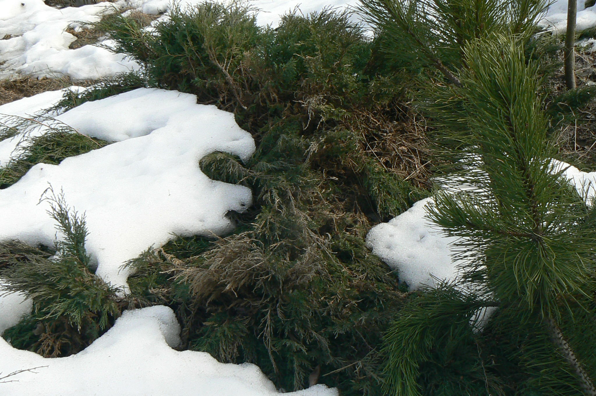 Zaryanka, это не гниль и не снежная плесень- достаточно подстричь и по весне хорошенько пролить водой.Будет собственный бонсайчик. Жаль, но не все хвойники после сухого лета легко перенесут весеннее солнце.