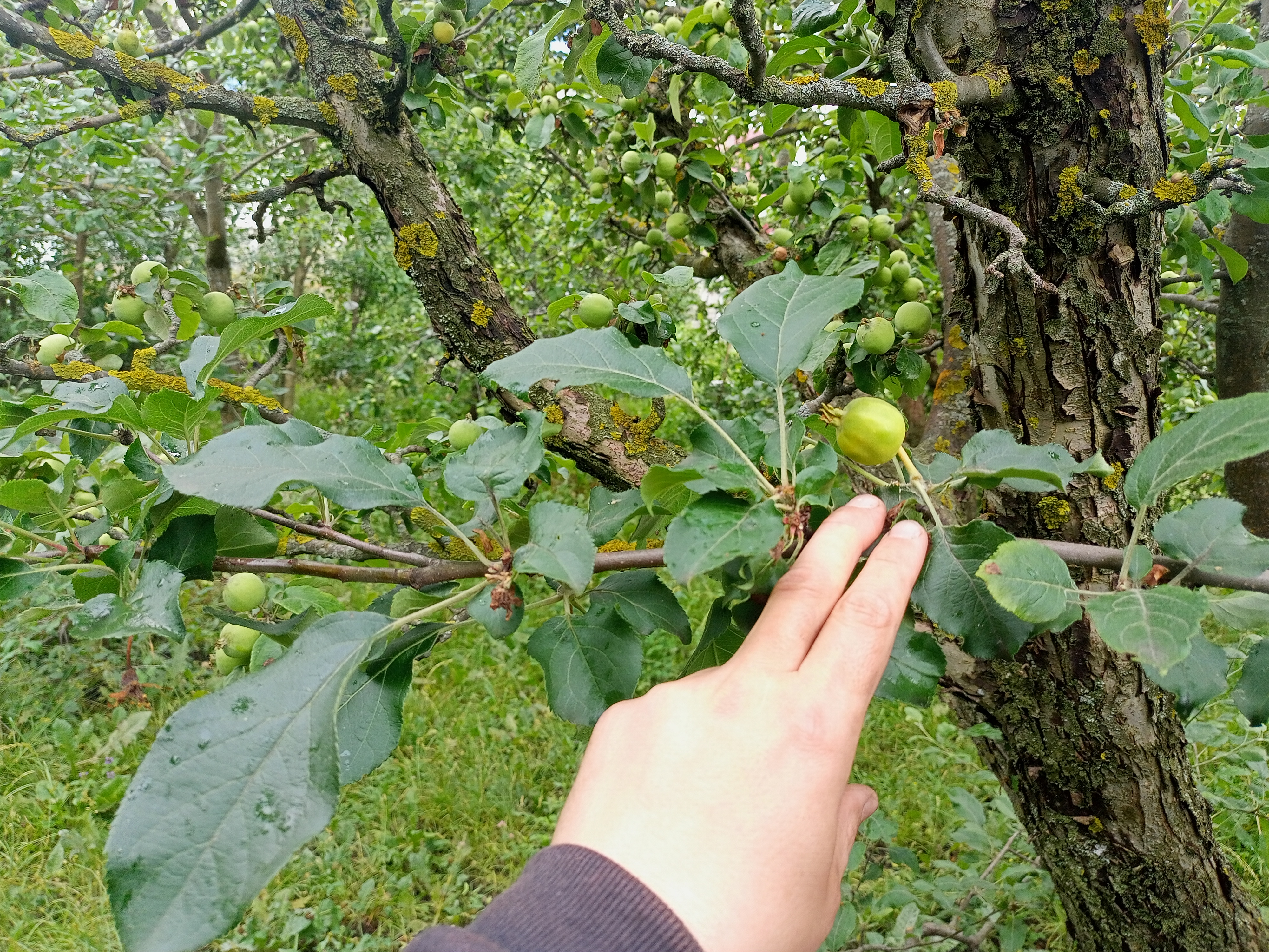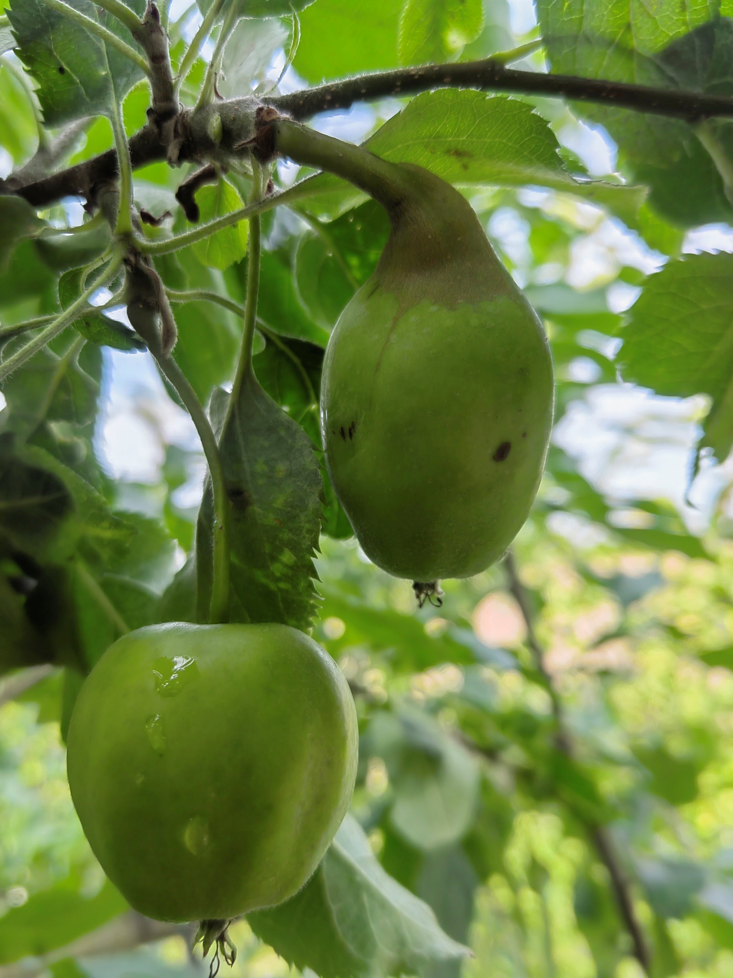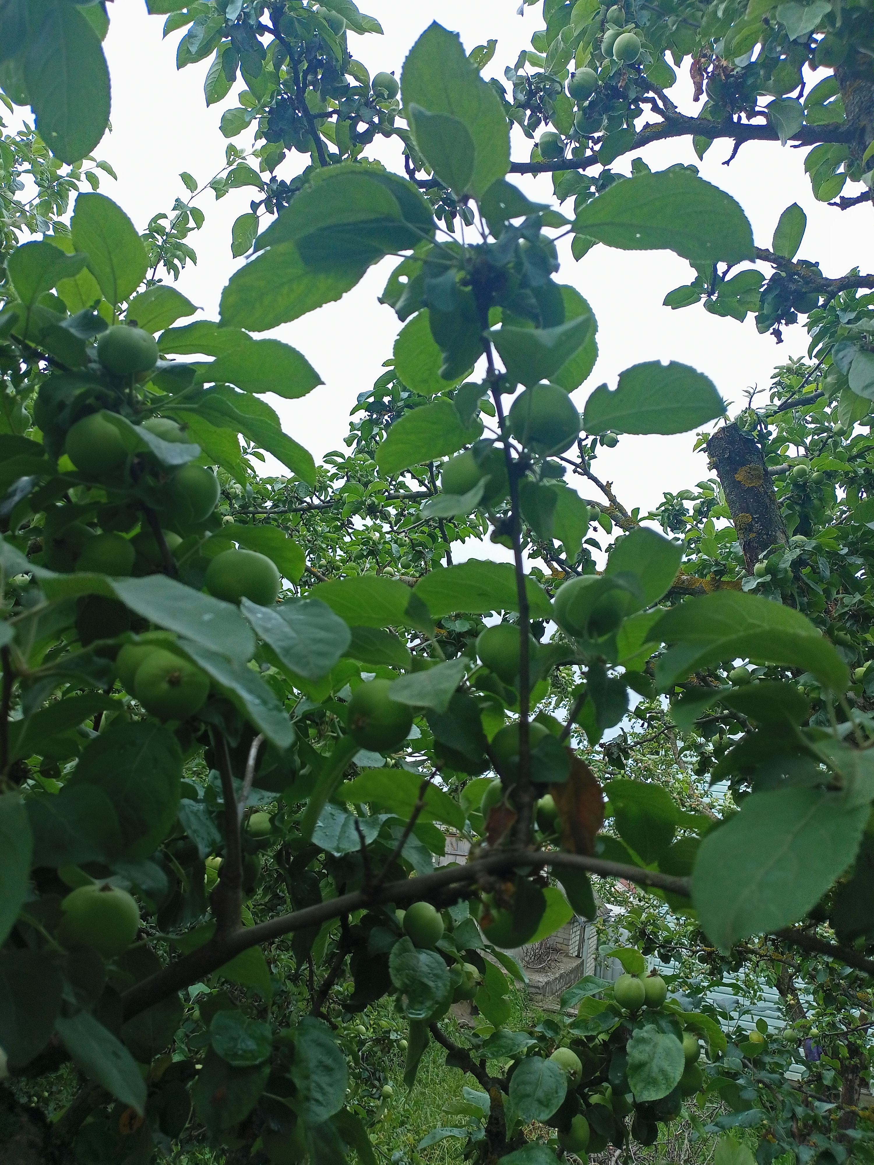 В этом году наконец-то завязалось Вешняковское, которое прошлые два года сносило заморозками. Попробуем, что за красномясый сорт такой, найденный в лесу :D