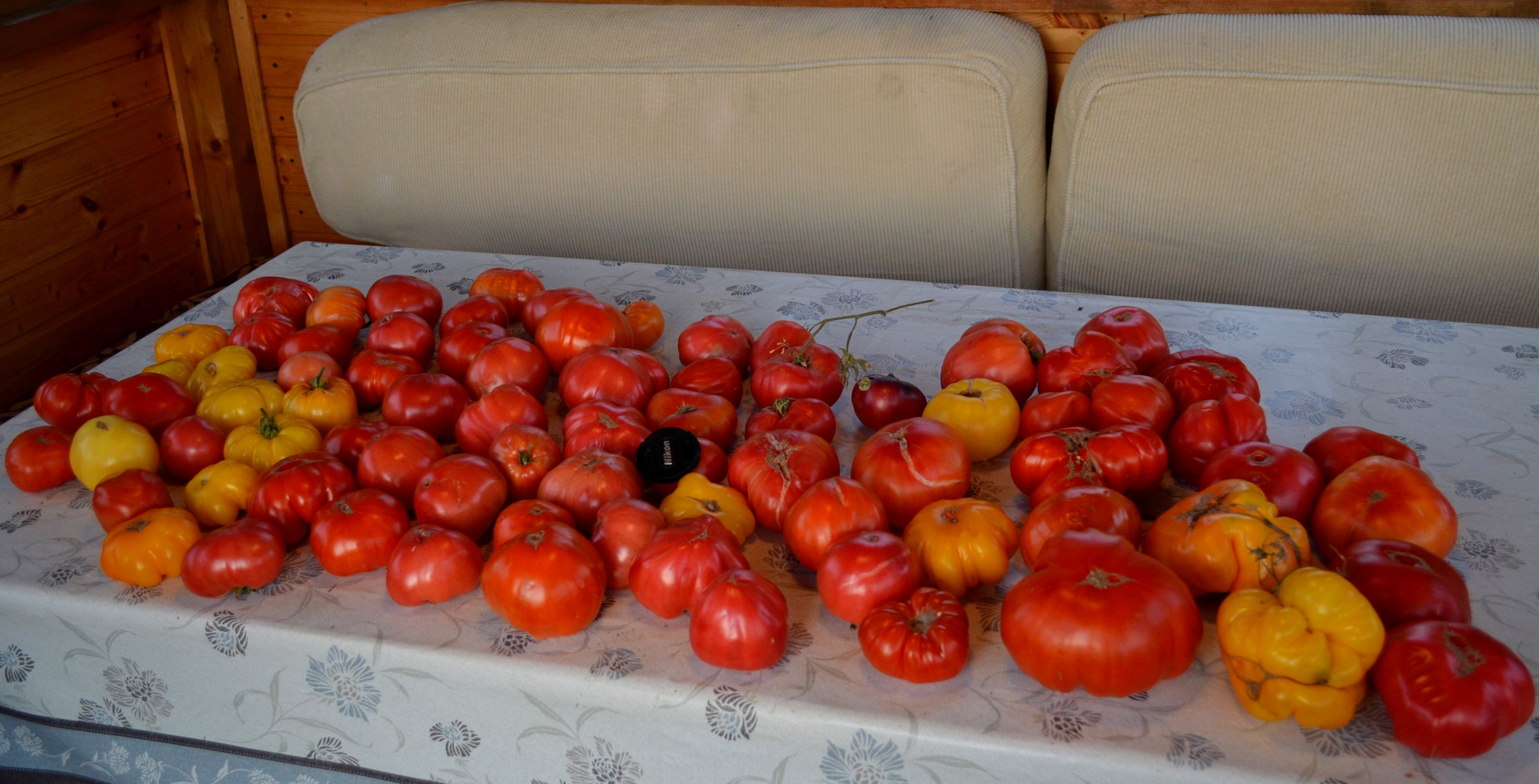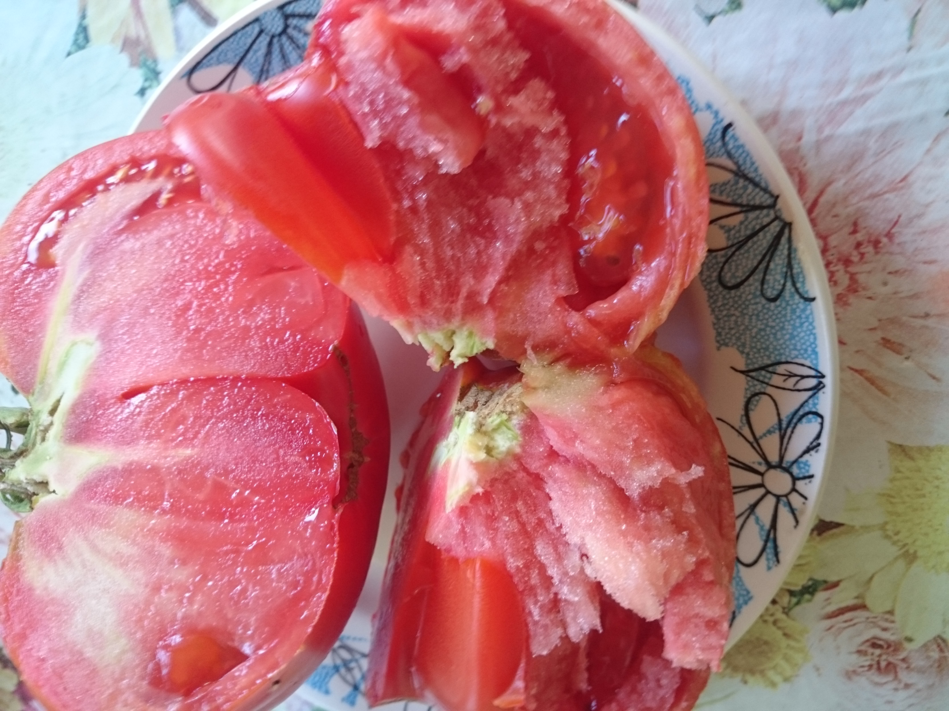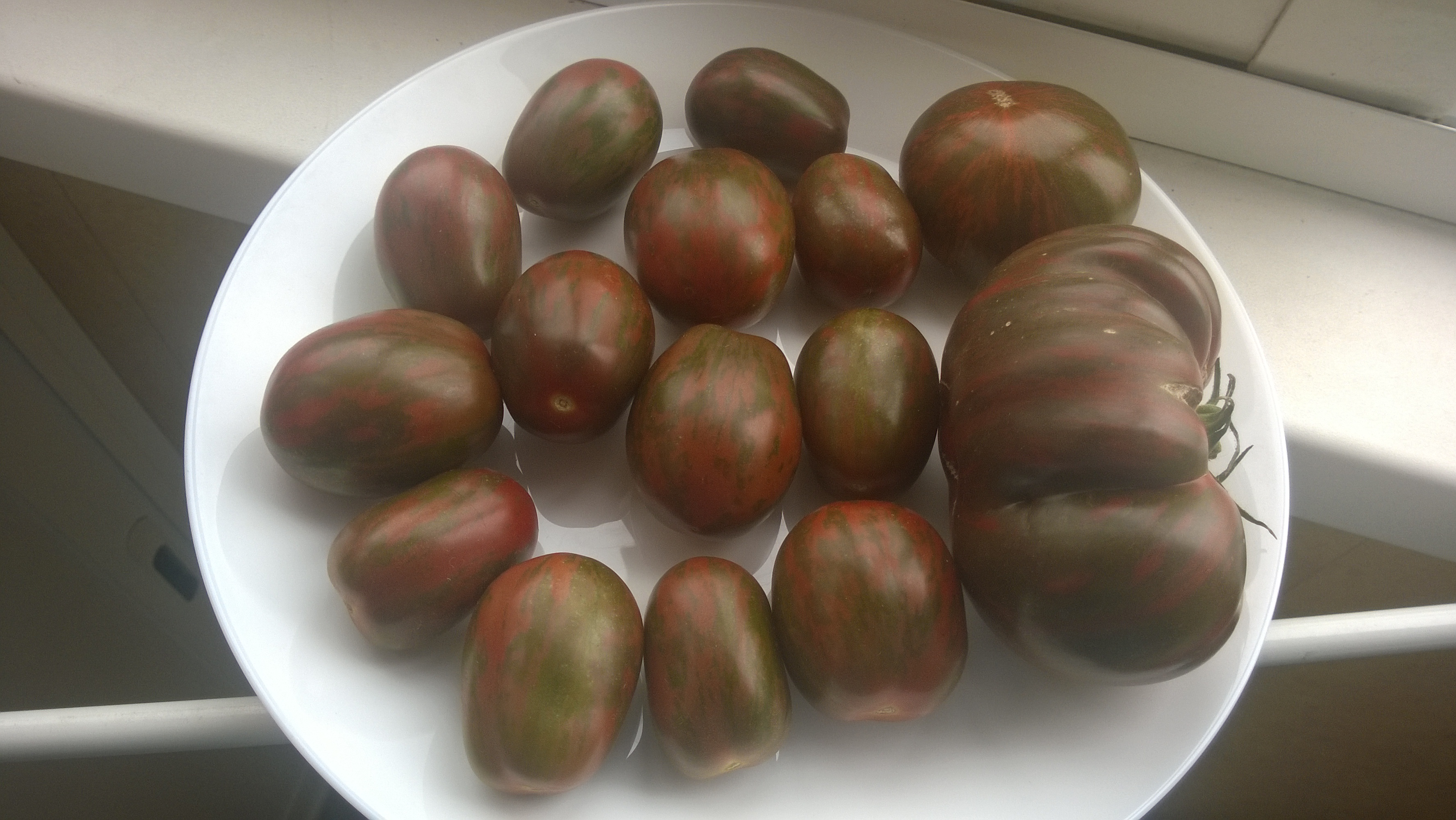 Сегодня снимала томаты, обещают ночи после выходных +2+3, что в нашем переводе вполне может обернуться и минусАми. Поэтому сняла на дозаривание.