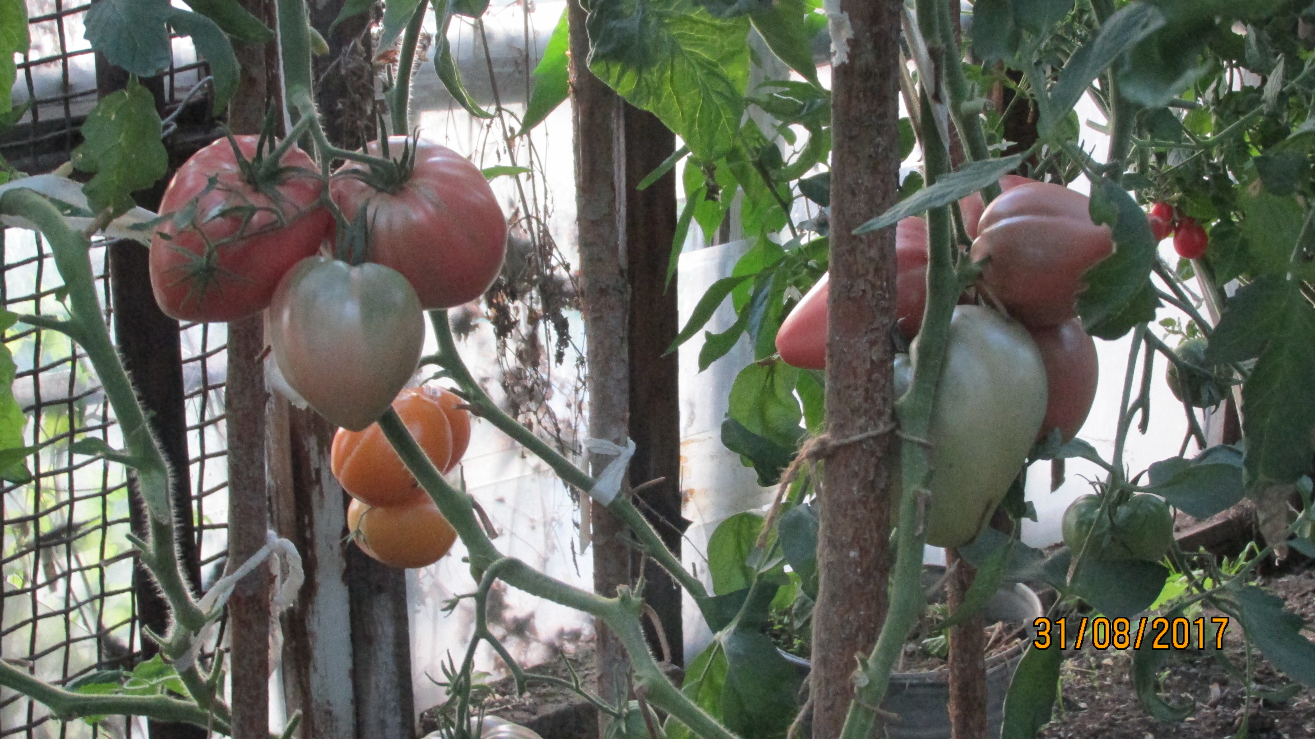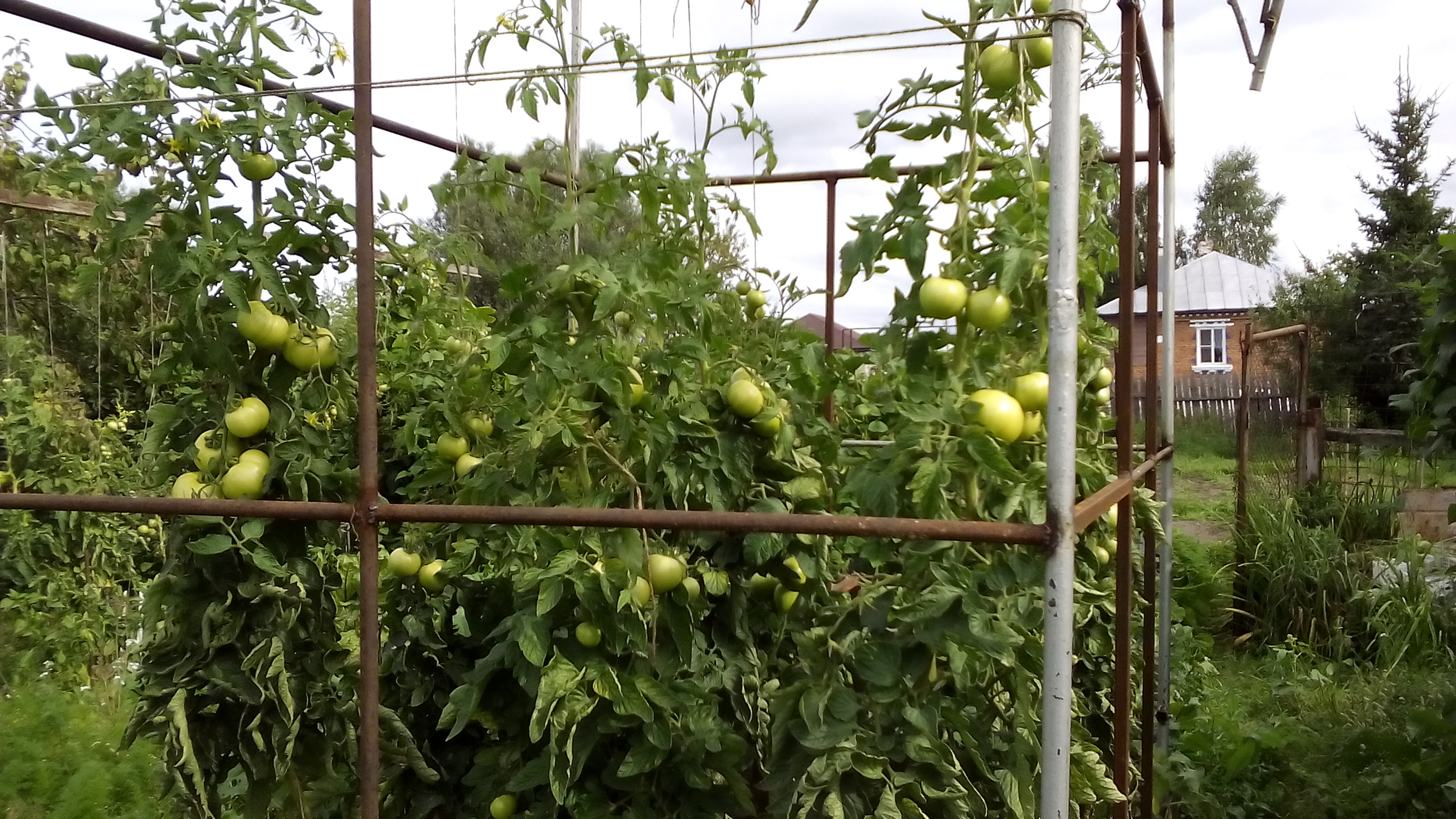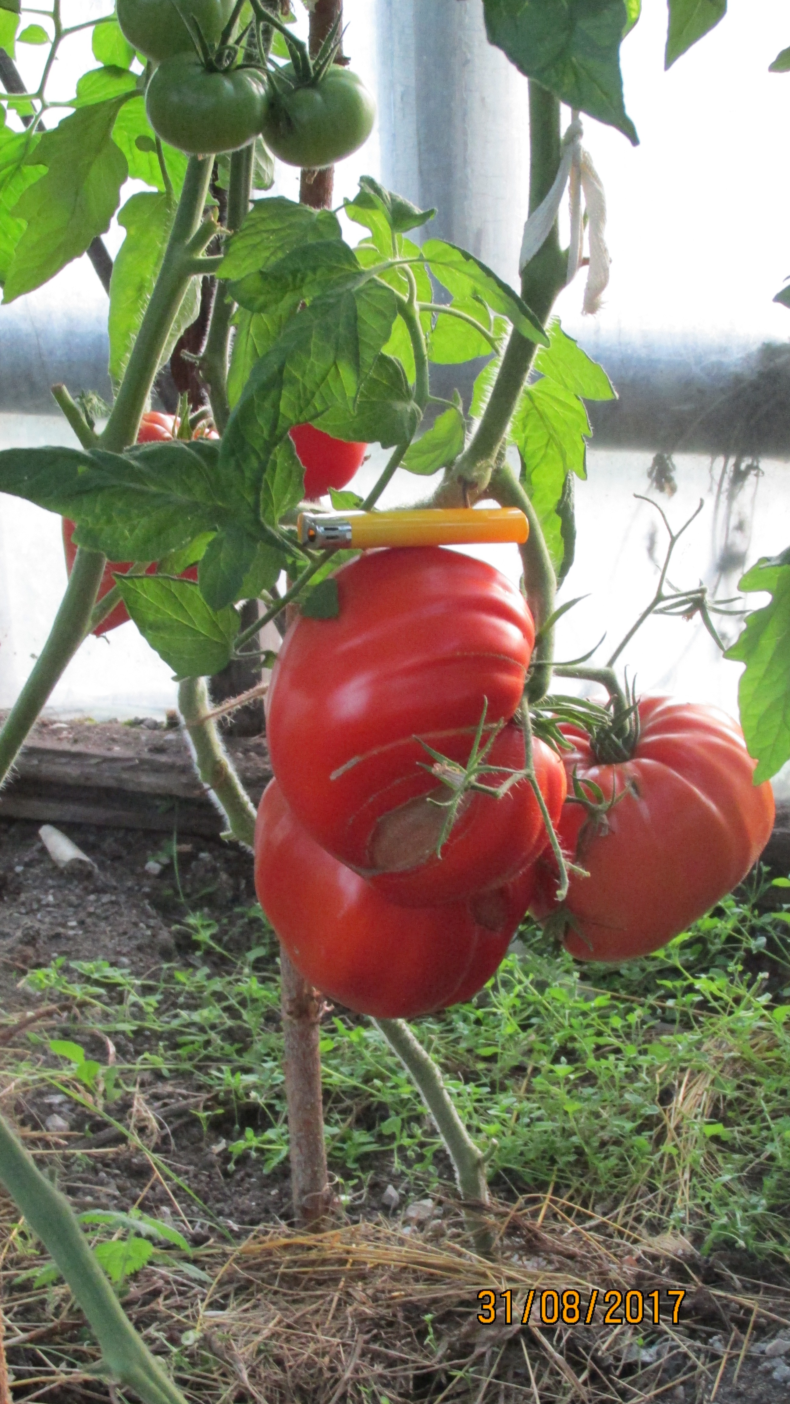Первые 8 крупных плодов вышли на 2,5кг (пару пришлось снять бурыми) , осталось висеть еще 17шт , но уже мелочь , визуально 100-150гр , не факт что успеют сильно прибавить в весе 27,08 04,09