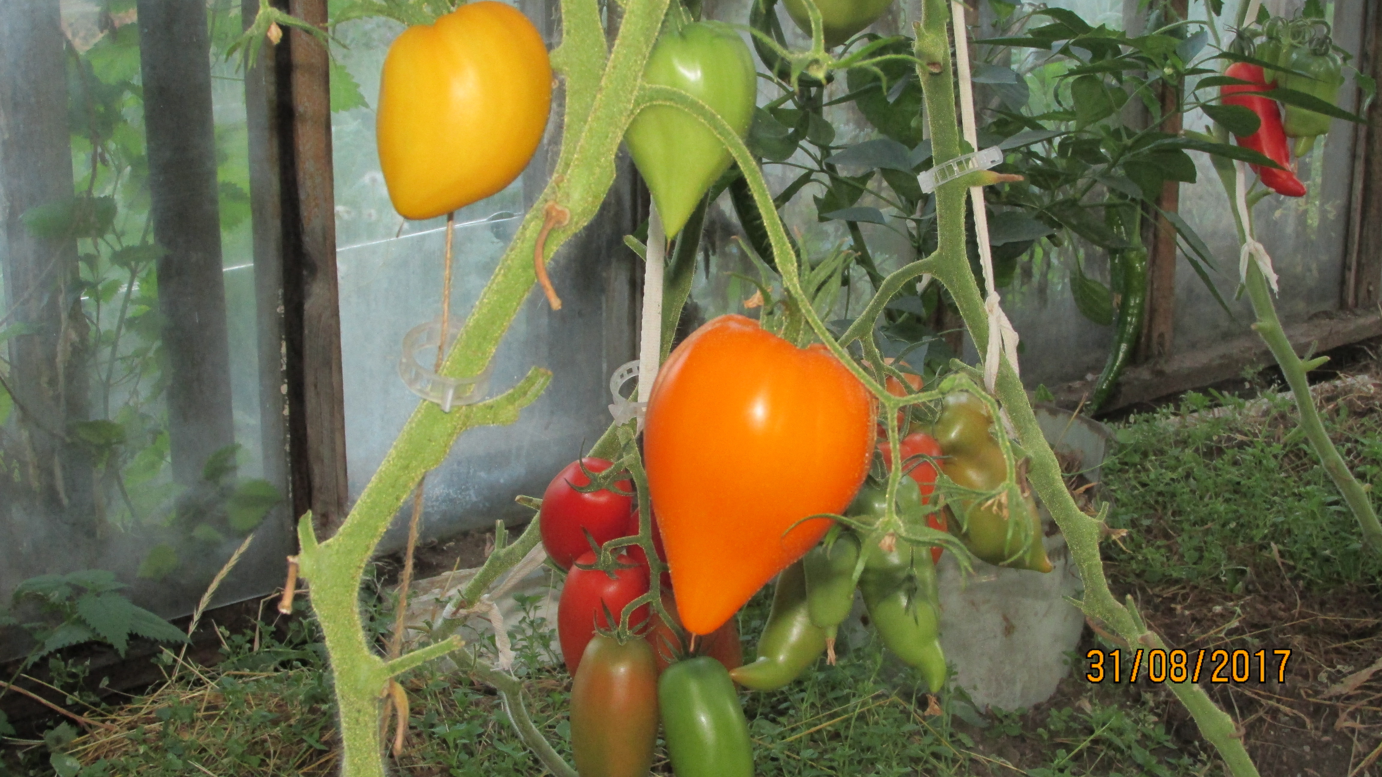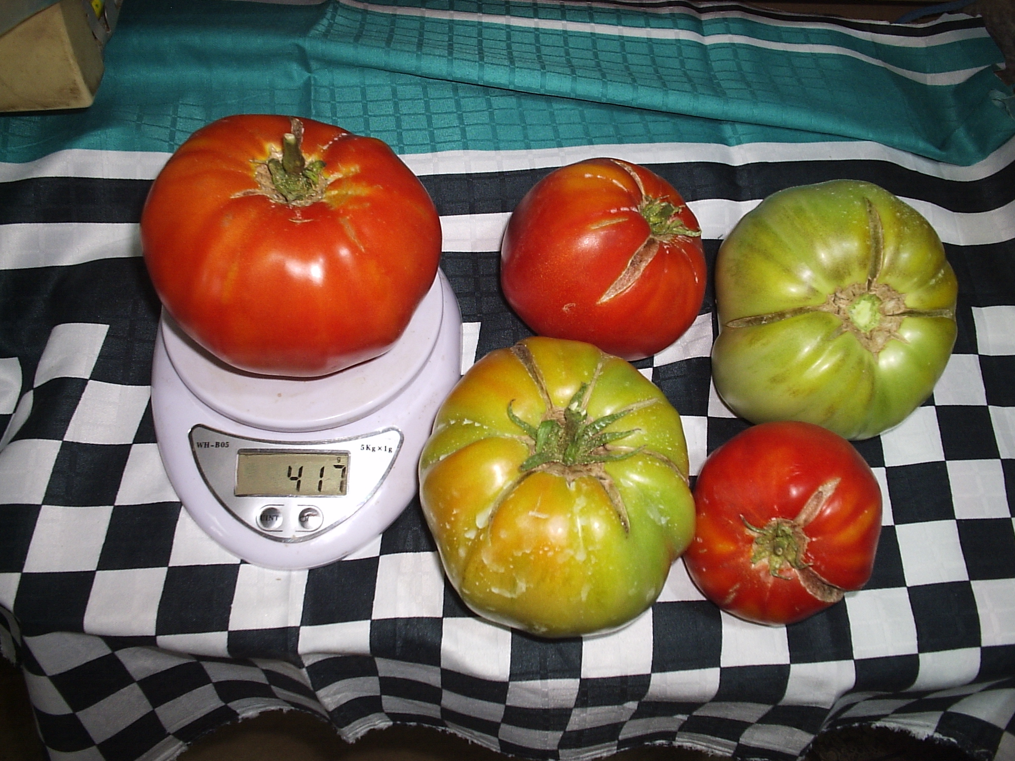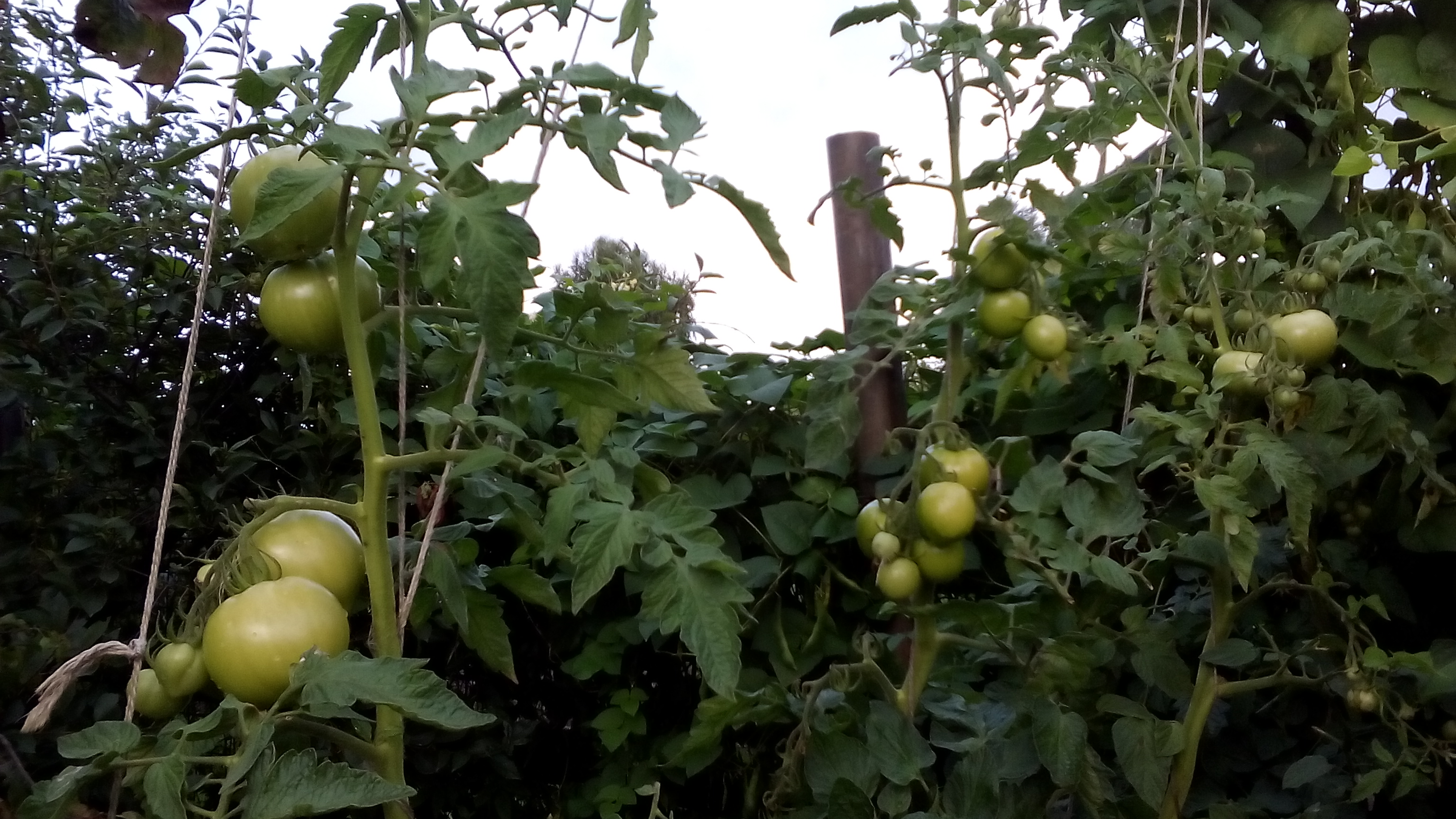 Первые 8 крупных плодов вышли на 2,5кг (пару пришлось снять бурыми) , осталось висеть еще 17шт , но уже мелочь , визуально 100-150гр , не факт что успеют сильно прибавить в весе 27,08 04,09
