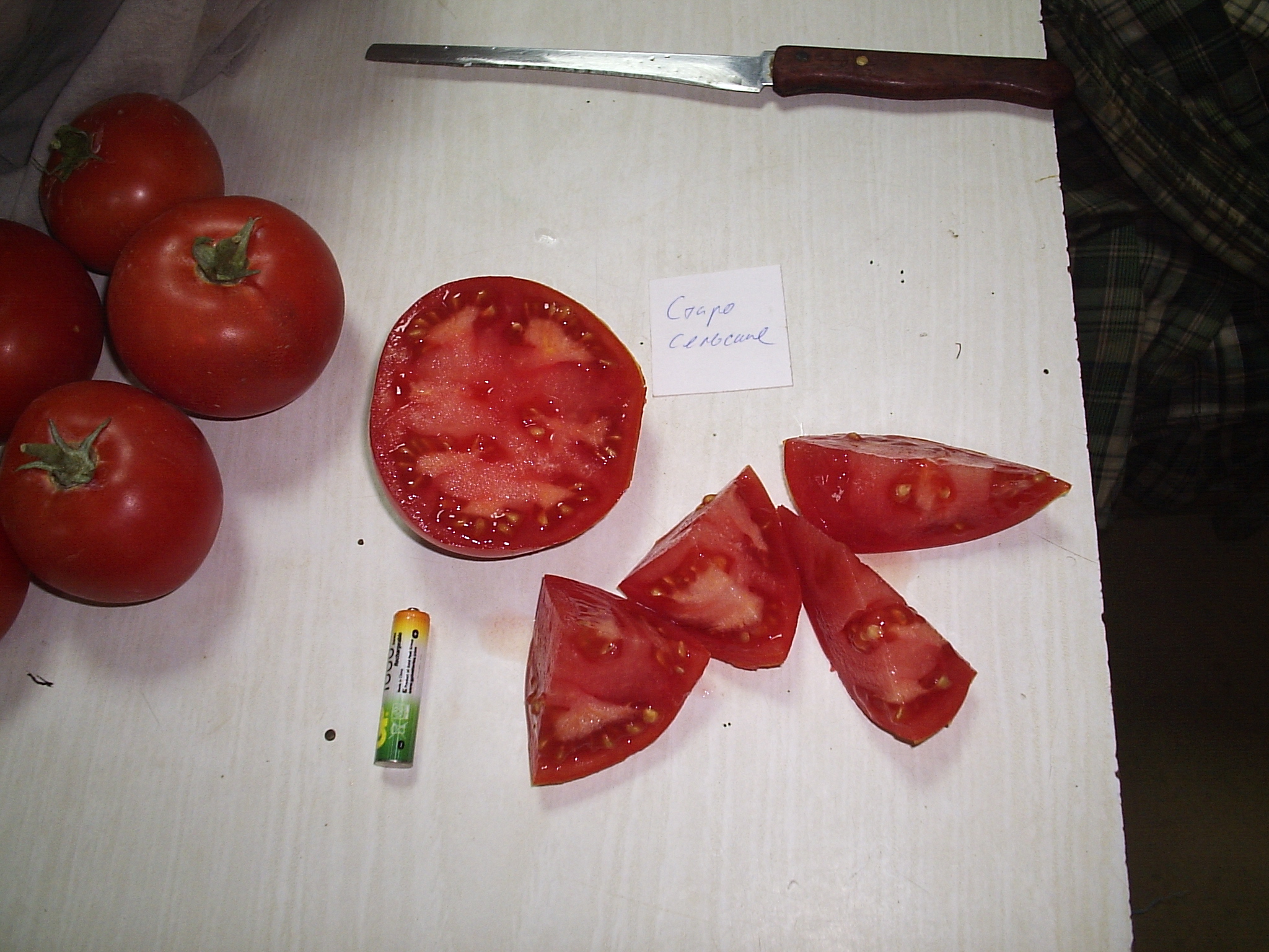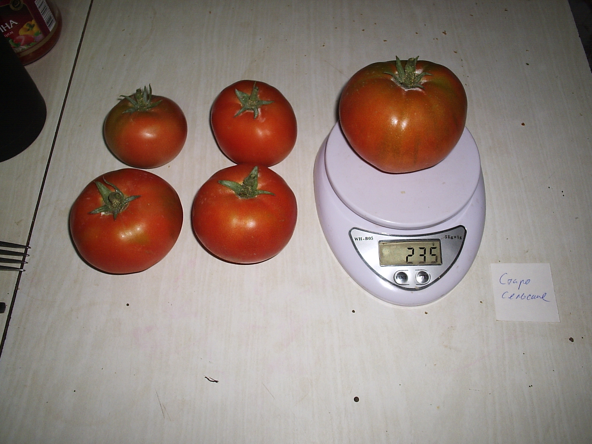 Соответствует.Впервые сорта Тарасенко я вывез из Украины очень давно из частных коллекций,еще пополнил немногим позже,лет шесть назад и опять же из Украины, но уже из магазинов,торгующими семенами томатов.Интересно было сравнить.У этого сорта первоначальное название было Сливка Тарасенко.Выписал у Редько,сравнил,точная копия.Теперь сею и свои и Редько через раз.Прошло довольно много времени и аутентификация уже практически невозможно.А часть томатов,с течением времени уже могут иметь двойное и тройное название.Вот еще один сорт Надежда(Легенда)Тарасенко. и еще Гибрид Тарасенко 2.Вес 1 кисти в О/Г 1кг715гр.В этом году поменьше.Таких у меня четыре сорта от разных производителей семян и все они немногим но отличаются.Кстати,у Редько сорт,который она называет Юбилейный Тарасенко,в действительности Гибрид 2,он есть у меня,выписывал,что бы сравнить с Украинскими.Юрий Турянский писал(а):В этом году очень Тарасенковские сорта заинтересовали. Но сорта Щедрая сливка у него не встречал. И томатленде семена есть только В.Редько. Соответствует ли описание томатленда вашей Щедрой сливке?