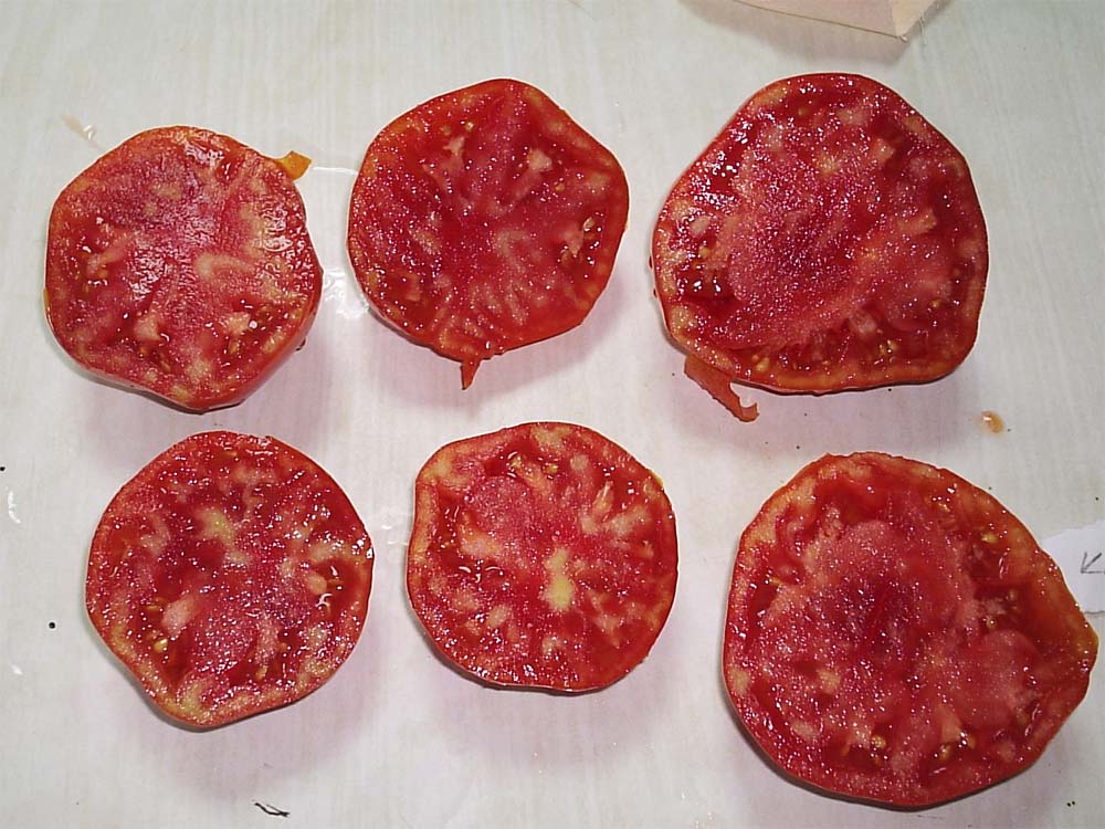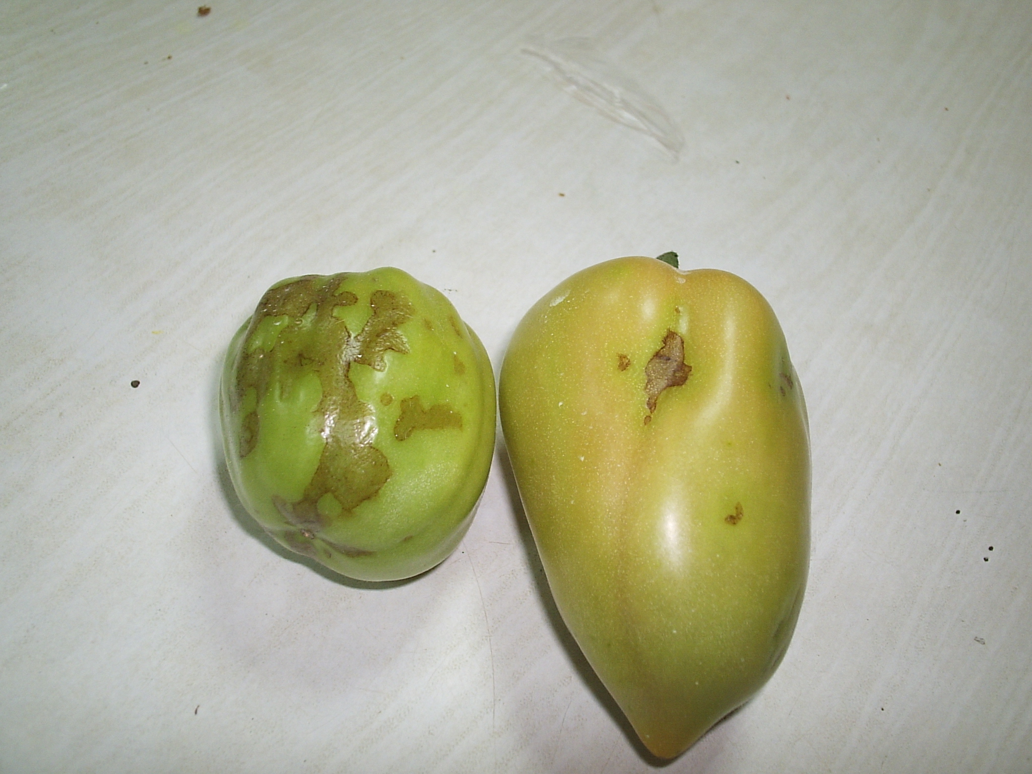 Мне показалось, что прогрыз от улиток или слизней (про слизней не буду особенно утверждать, не видим их практически, конкуренции не выдерживают) как бы подсыхает. Во всяком случае у меня так. Снимают только тонкую верхнюю оболочку, сок еще не идет. Подгнивать еще нечему. А дальше обветрилось и засохло.