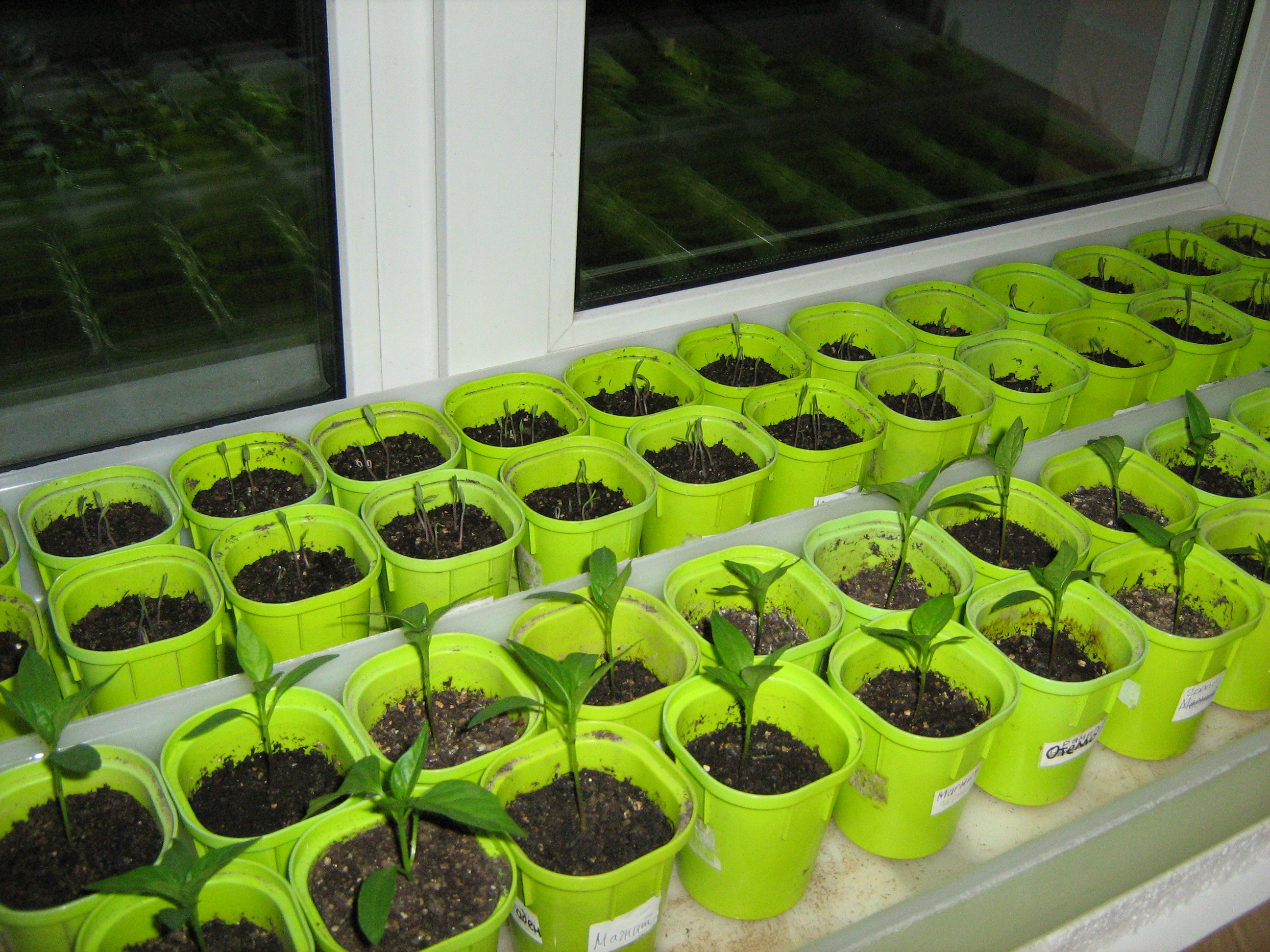 Пока отсутствовала с пятницы, здесь уже колосится. Пикировать отсюда не буду, буду просто подсыпать грунт до верха (высота коробок из под торта - 12 см). Расти буду исключительно на южной лоджии. Пока заморозки- на ночь в квартиру. Вынесу как только появится первый настоящий листочек. Тогда сделаю первую подсыпку грунта до семядолей и вынесу в прохладу. Будут готовиться к ОГ.