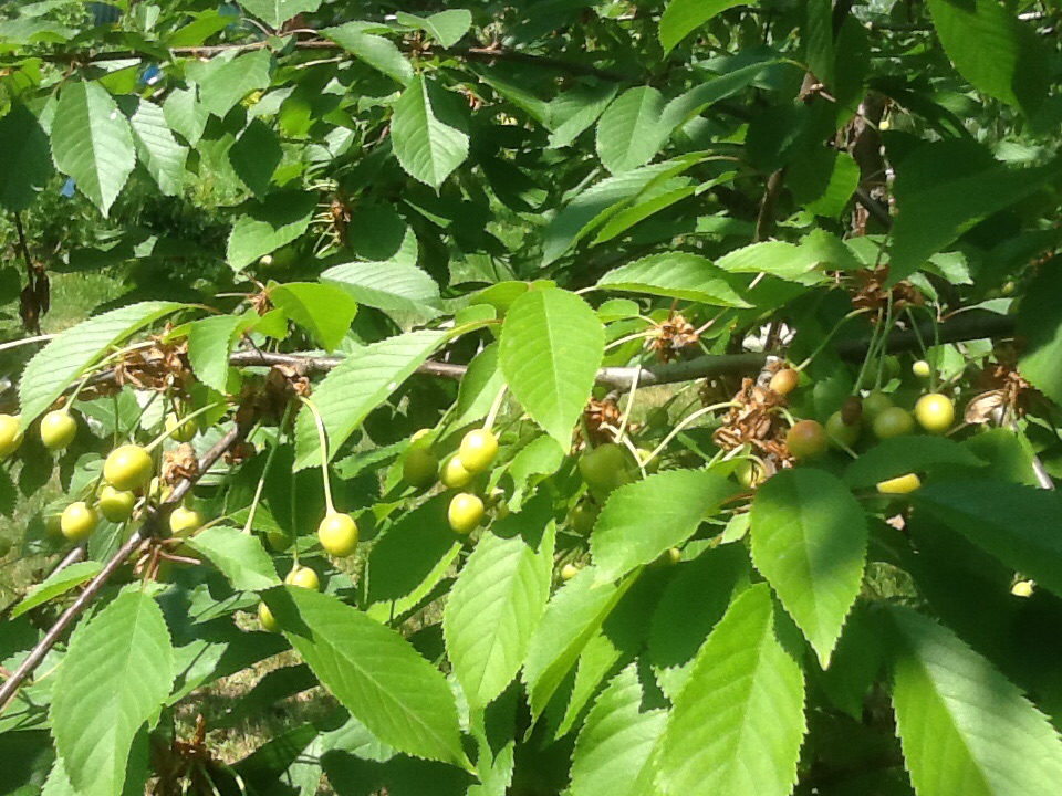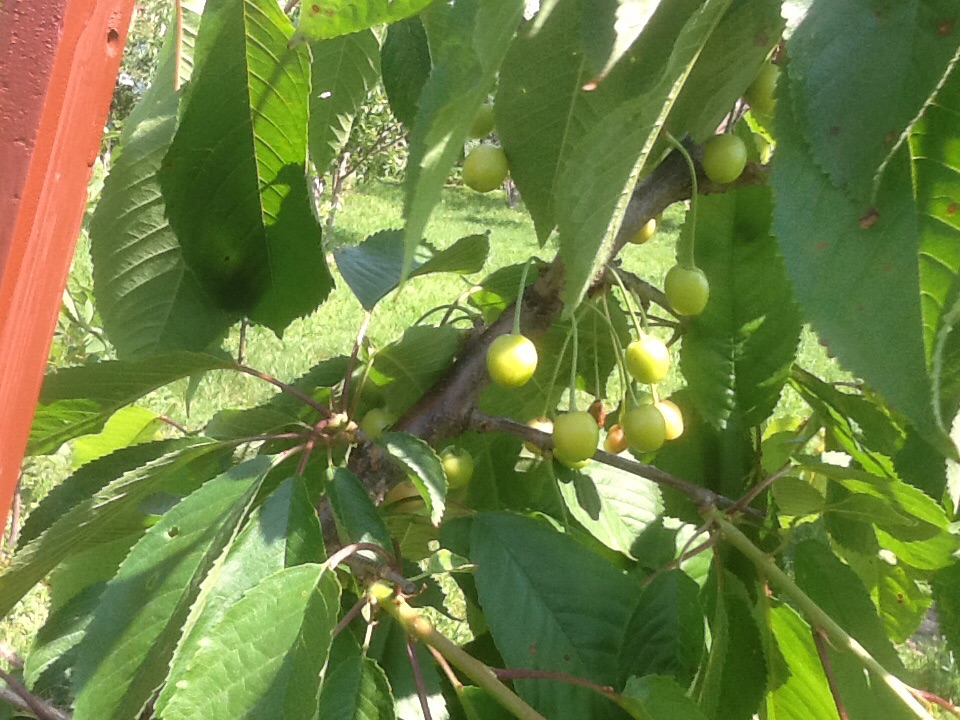 Сегодня от души наелась своих ягод. С южной стороны кроны созрела Чермашная. Дерево завёрнуто в сетку, которую уже побили значительно, с разлёта. Помогла неожиданная вещь - меховая шапка надетая на кол. Опасаются. Но дерево огромное, мех с южной стороны дерева, и если залететь с другого бока...короче, садятся на сетку и едят, что смогут. За два дня с мехом на палке всего двоих "словили" в сетке, еле вытрясла. Уматывали с криками. Заметила, что как только у соседки начала краснеть черешня, жёлтая стала неинтересна, переметнулись на красную.