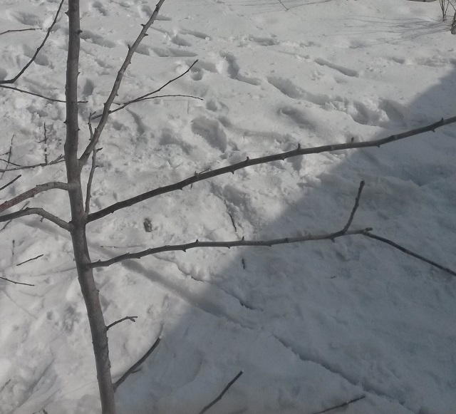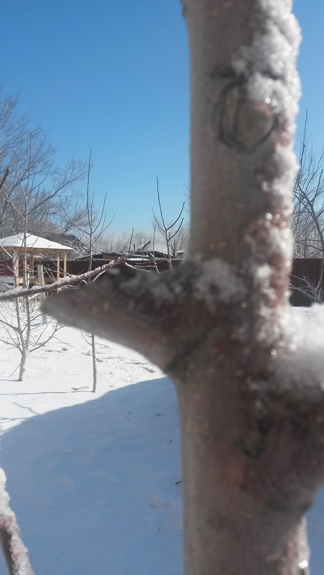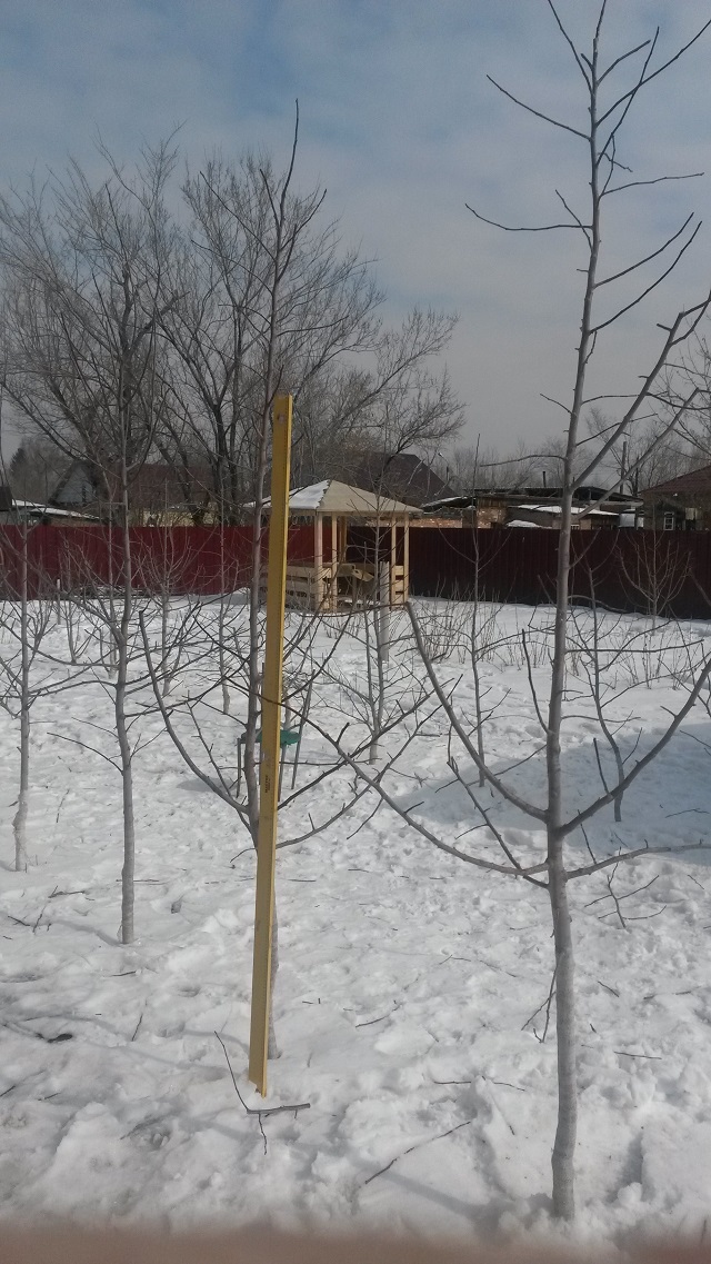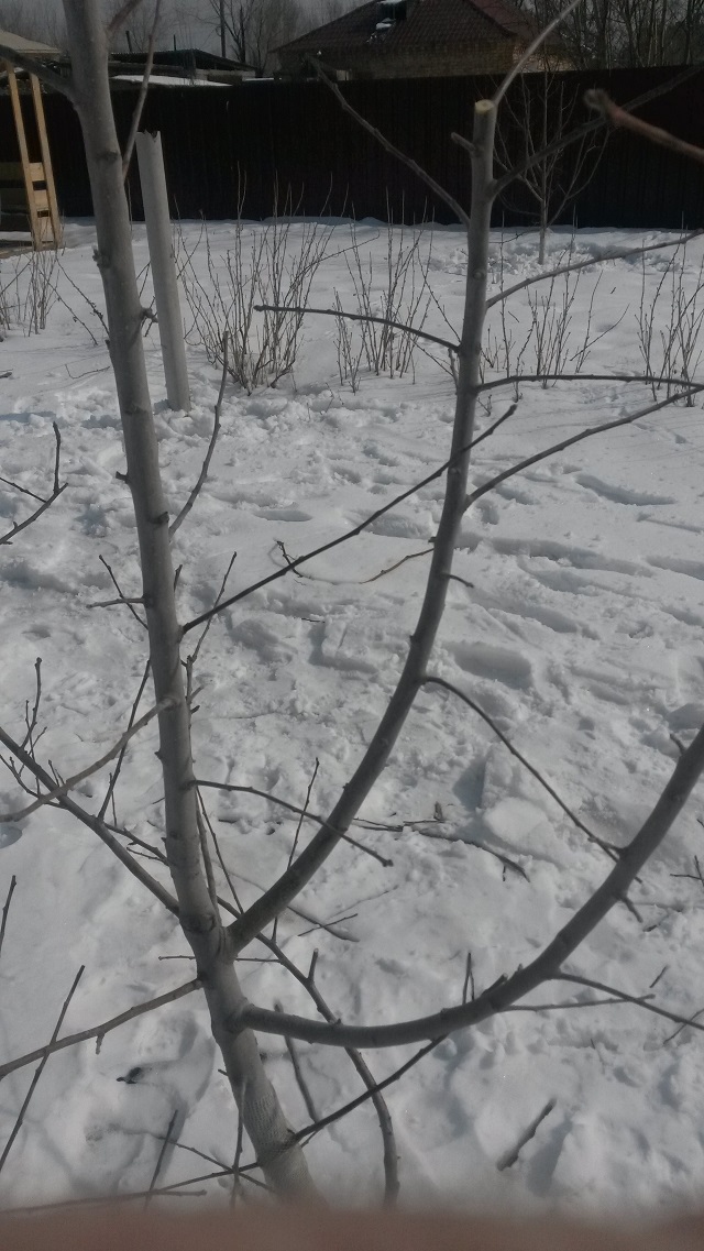 В прошлом году снега было больше 1,5 м. Весь нижний ярус на деревьях поломало снегом. Решил перестраховаться и по осени ветви подвязал. Ушло на это несколько дней. Оказалось, что напрасно....