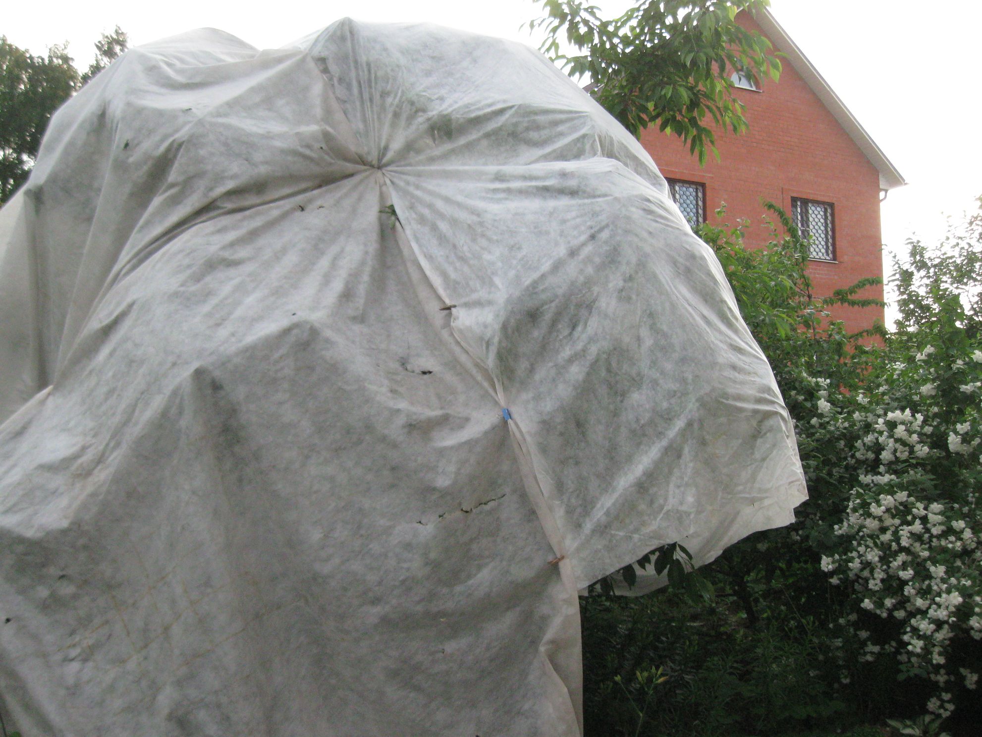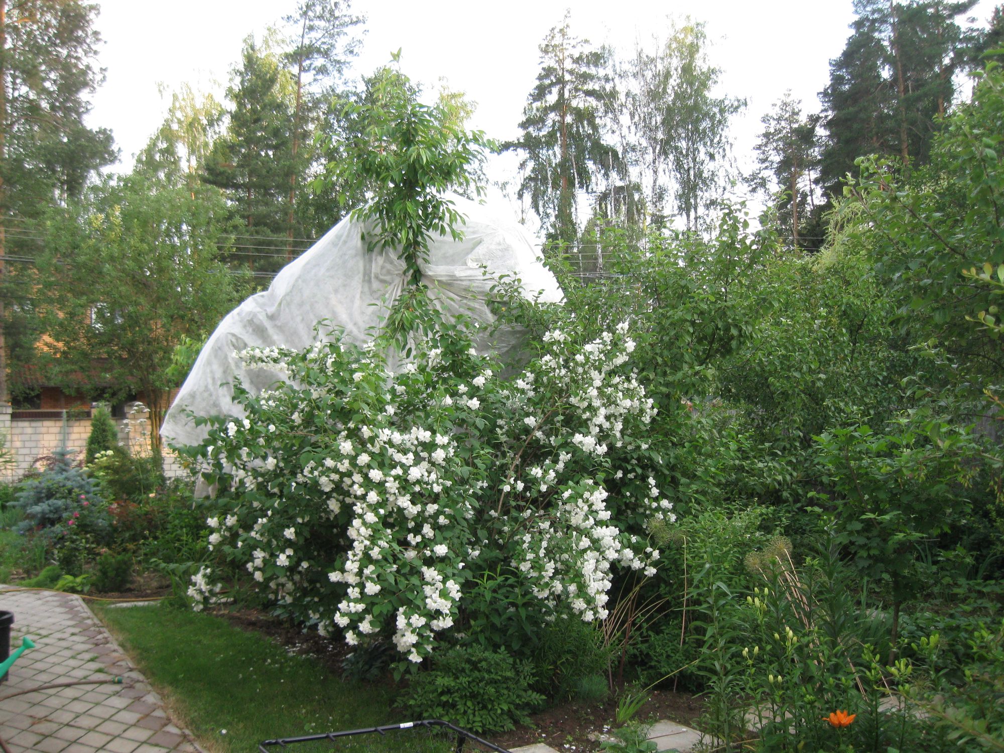 . Так что пока так черешни спасаем. Раннюю уже съели без помощи птиц, а это самая большая Приусадебная 9 лет. Она тоже местами поспела, розовая уже сладкая. Здесь два куска спандбоба по 10 м, используемые для укрытия роз,скрепленных прищепками, Внутрь шатра можно заходить и лакомиться. Котов у нас трое, на птиц даже не смотрят и птички обнаглели.