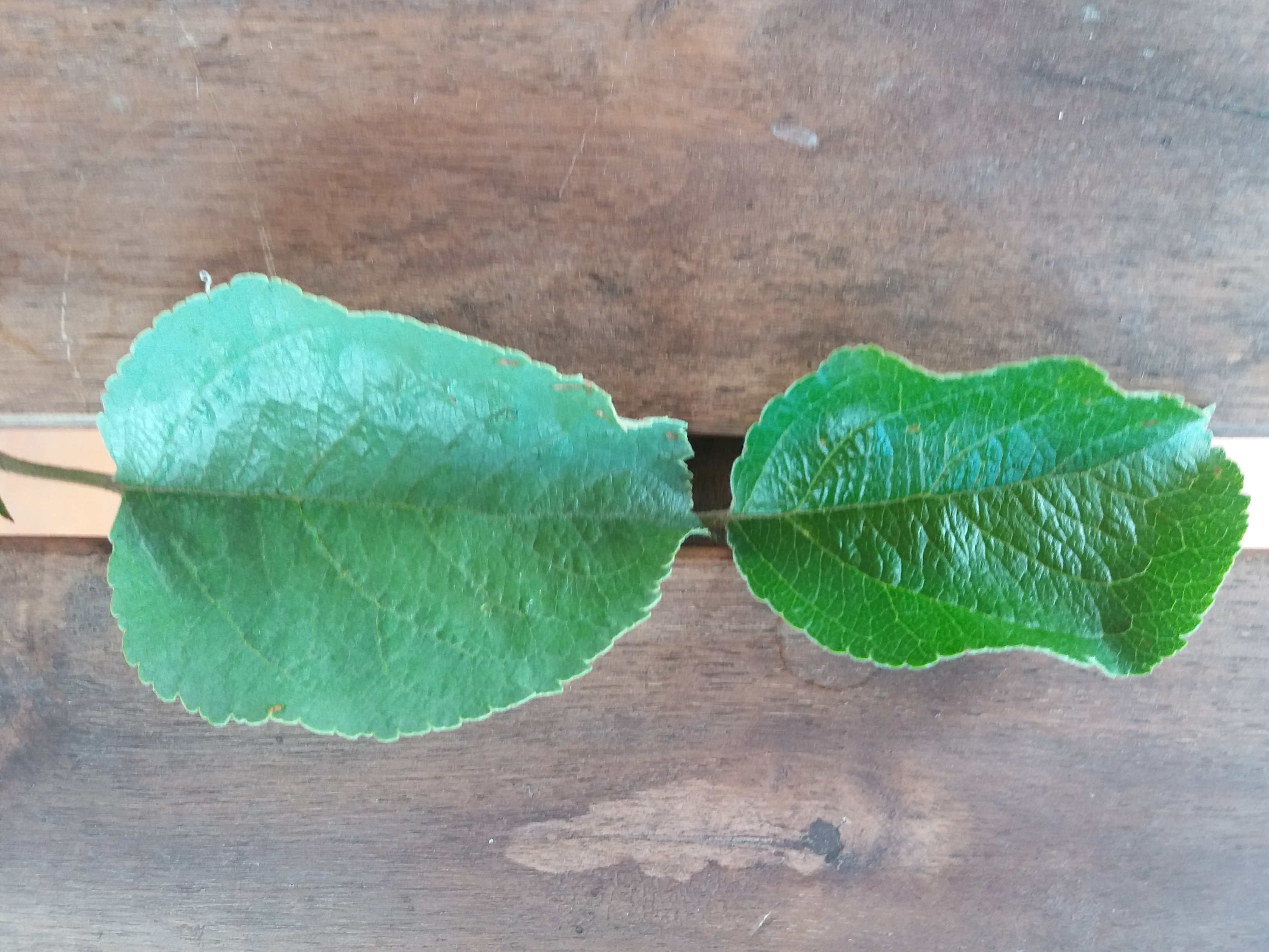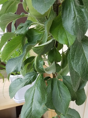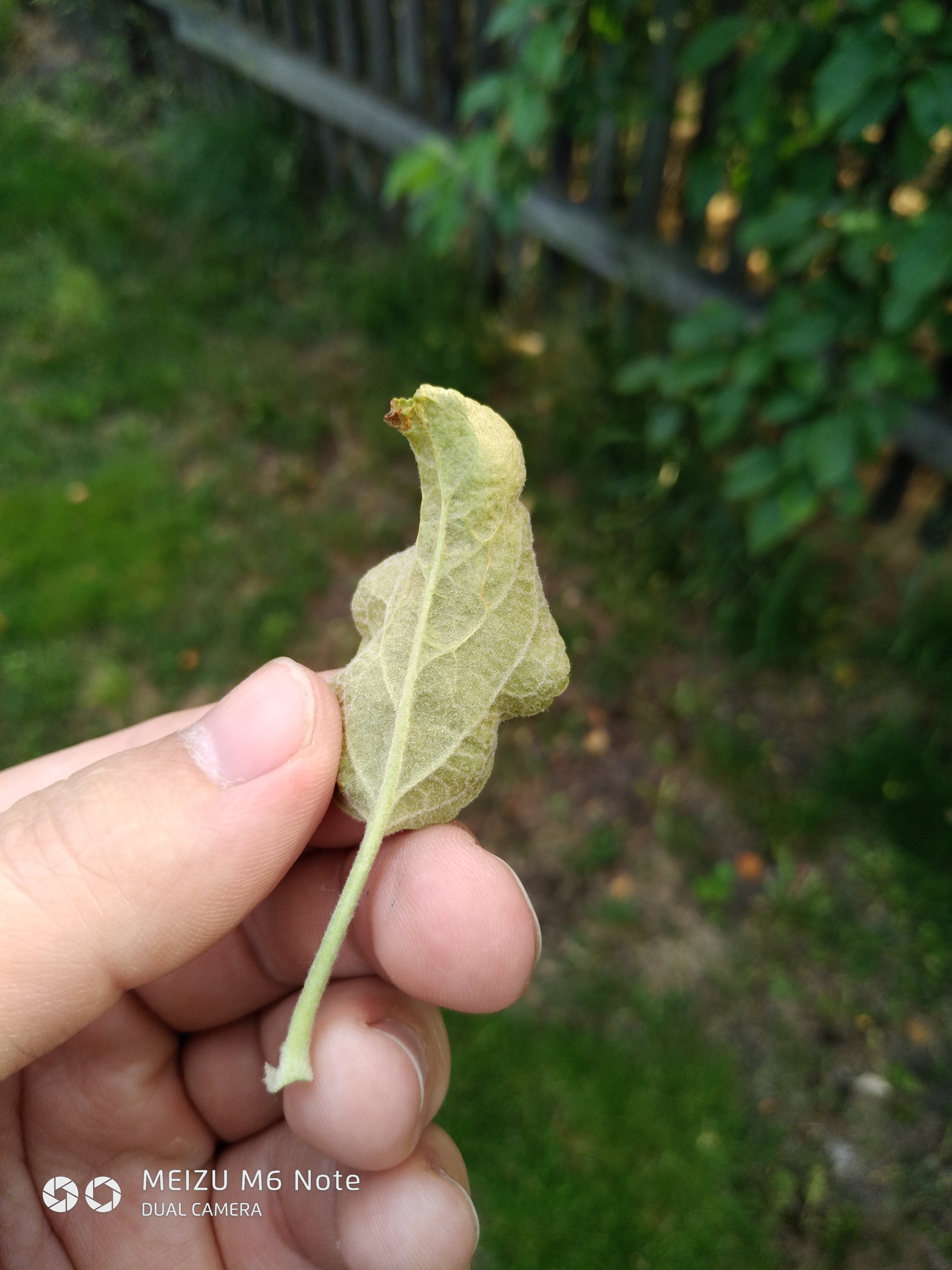 Запомнилось что у яблоньки листочки были мельче тех что во дворе росли и более "войлочные" - видимо условия мои идеальными не были.