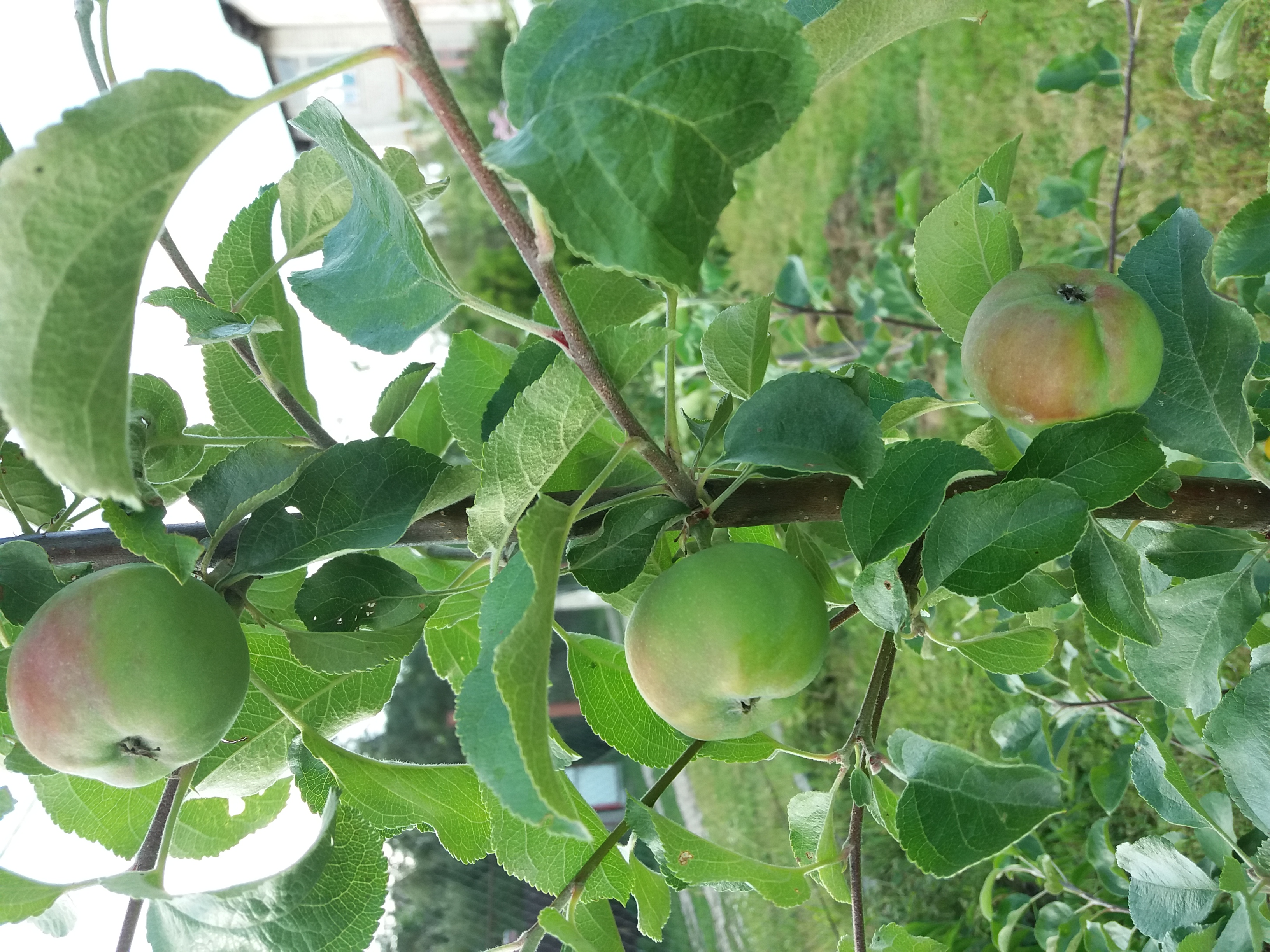 Яблоня колоновидная, у меня первый год, но покупала 2х летнюю. Живет на застекленном балконе, но окна всегда открыты, этаж 20-й, сторона западная.