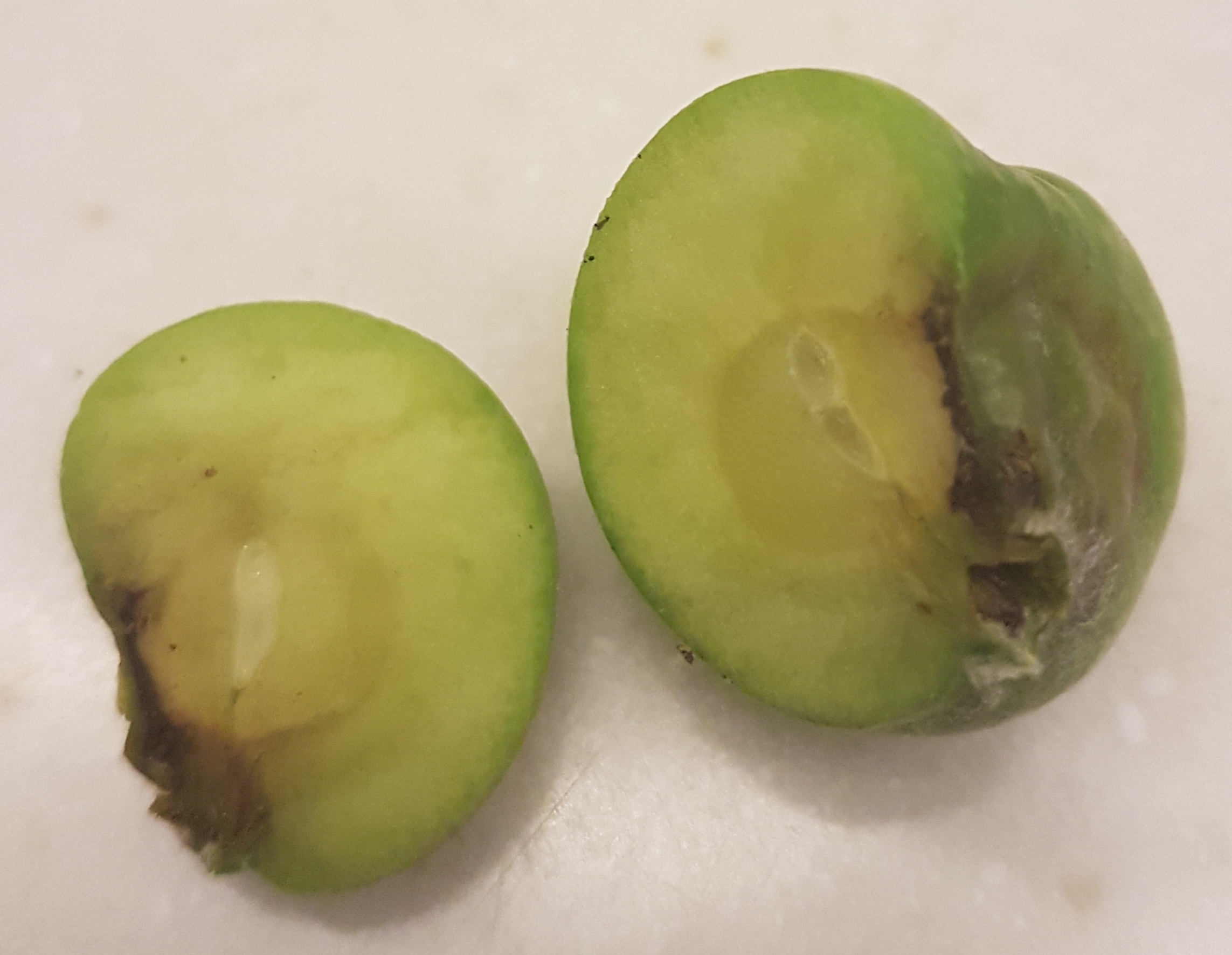 Которые еще зеленые выглядят поникшими, некоторые как скрученные.