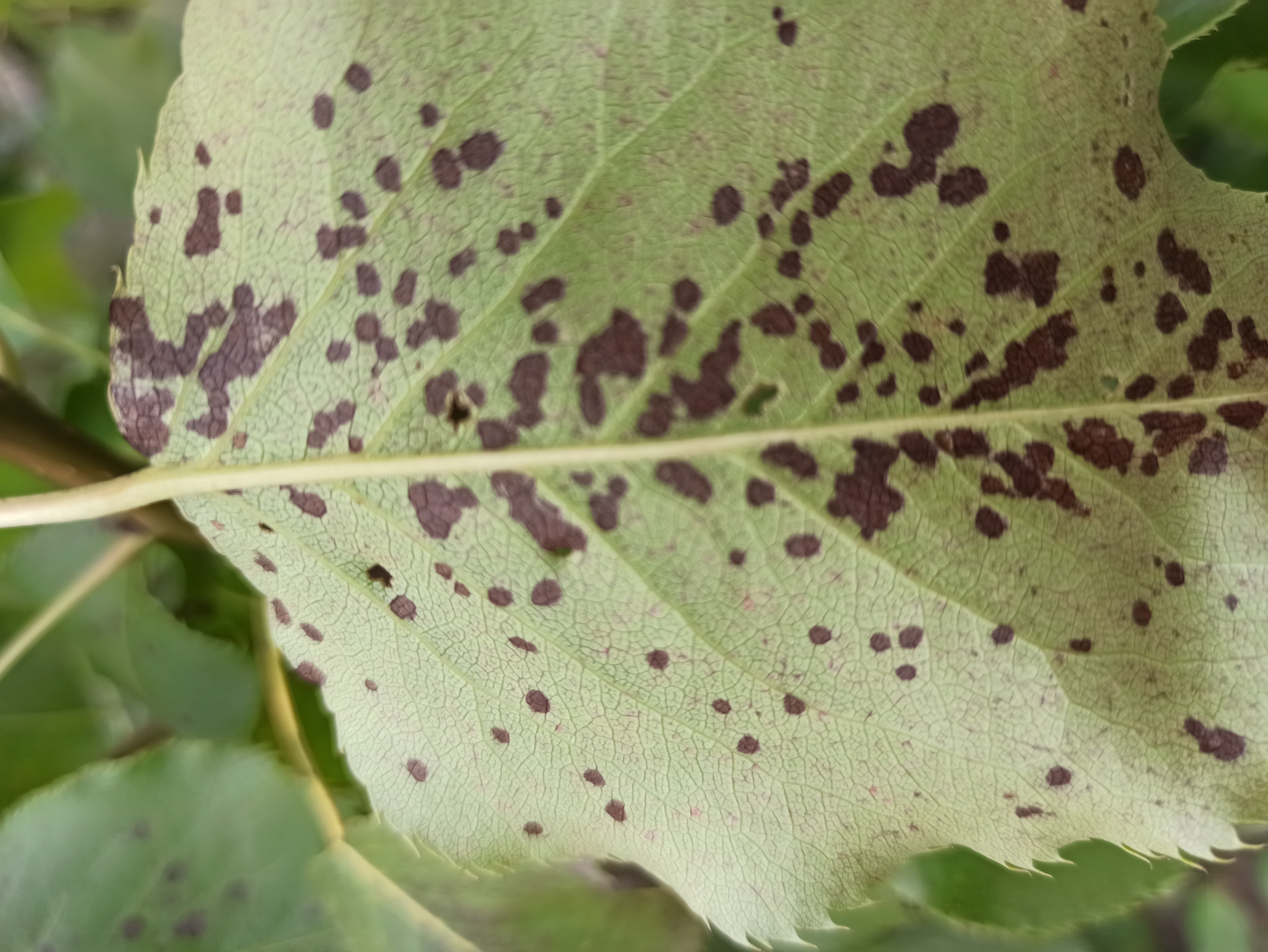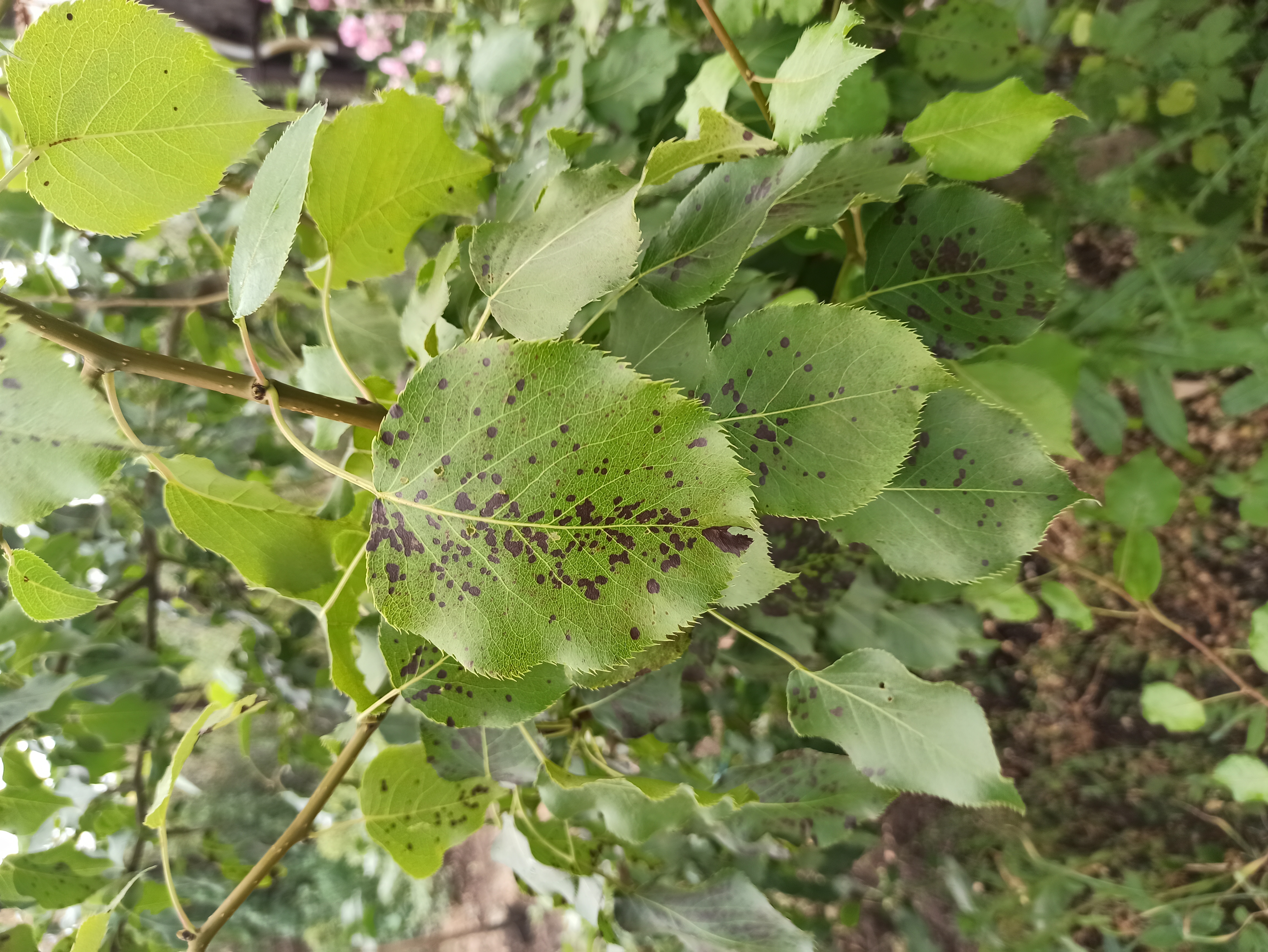Если дичка, то - просто. Бурая пятнистость. Они к ней чувствительны. Ракурс должен помочь. Вроде, должны и препараты с д.в. пропиконазол(Агролекарь, Прогноз, Чистофлор, Rubit профи...). Если - сорт, то надо ждать, что дальше будет. Не бактериоз ли?