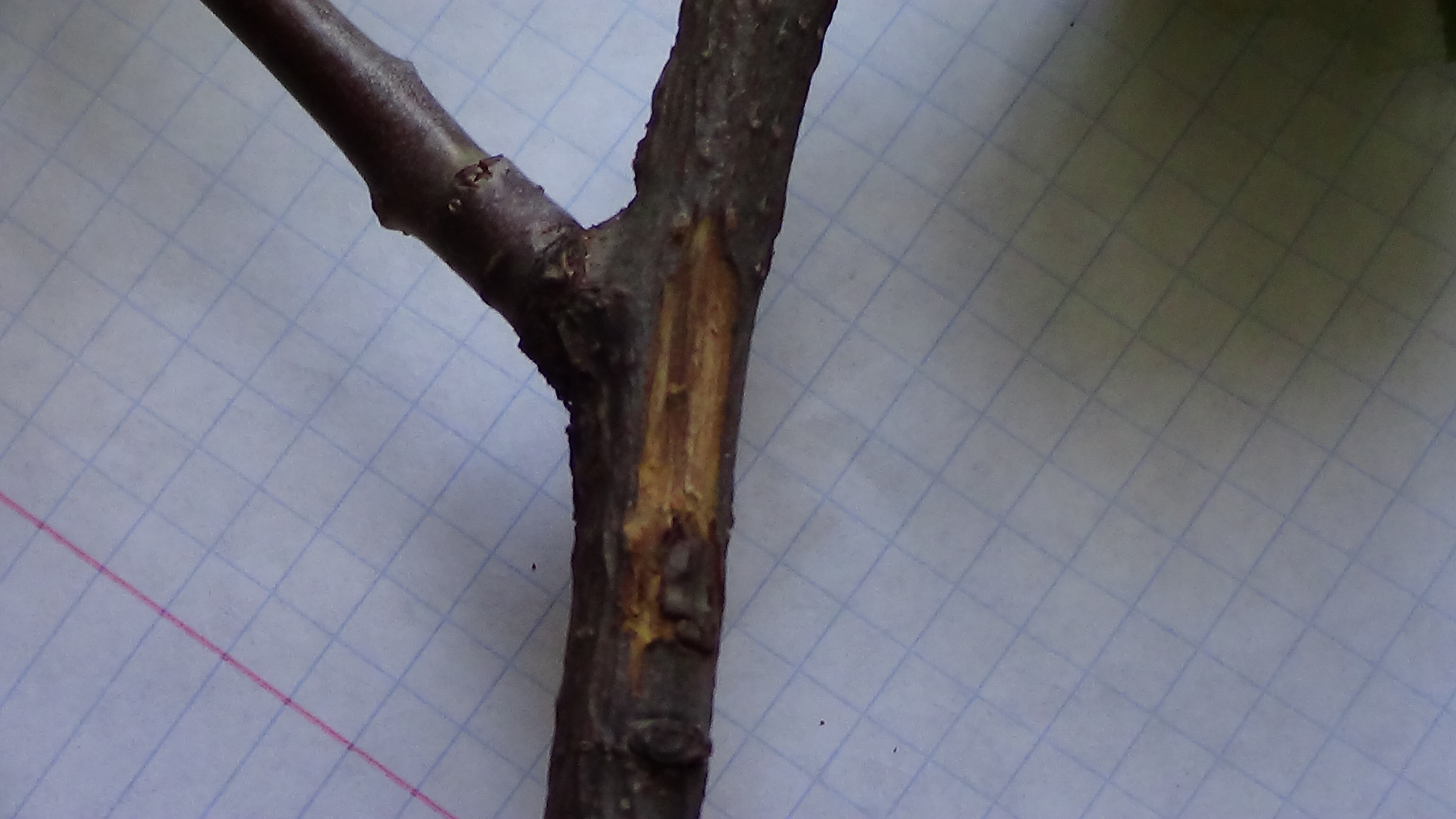 Какая-то зараза напала на молодую грушу. Кора сморщивается и побег высыхает. На срезе ниже пока вроде в норме. Что бы это могло быть и как с этим бороться? Подскажите, плиз.
