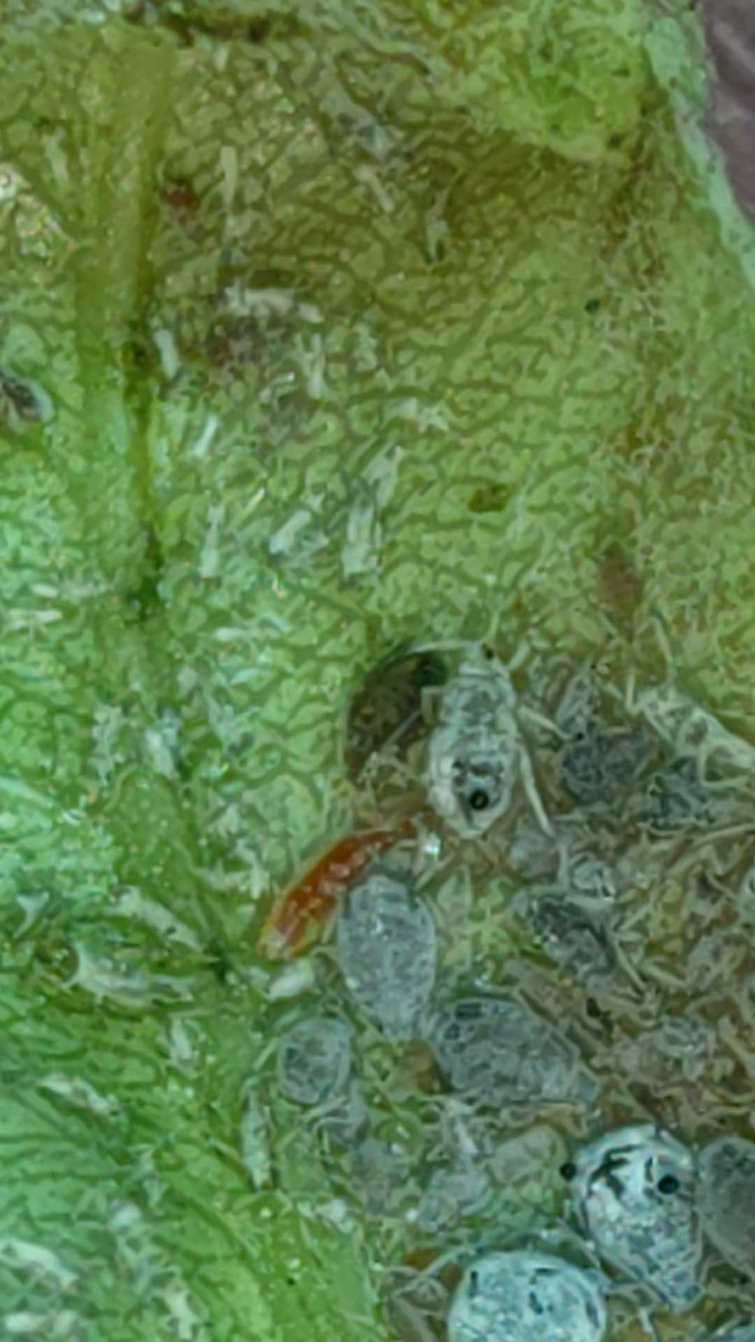 На груше свернутые листья, в них вот это.Похоже вылупляются личинки медяницы, муравьев нет,вот это все дышит и шевелится.А может это такой вид тли?Посмотрел в инете,скорее это такая тля,серая,их видов полно.