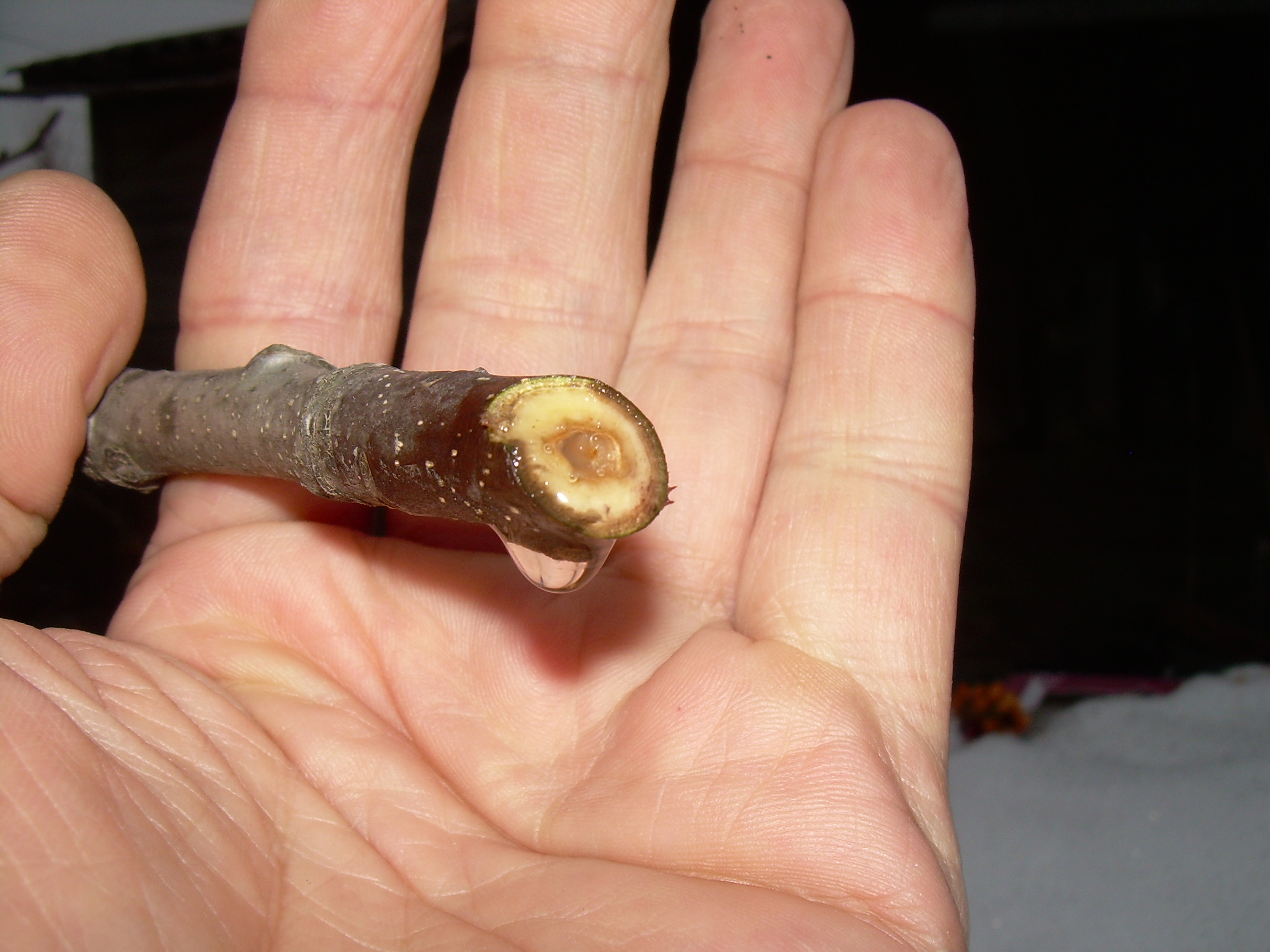 Вторая зимовка , из двух десятков сеянцев у двоих-троих подмёрзла верхняя почка , остальные вот в таком состоянии , а морозы были за - 30 ! То есть "реактивная" интродукция в действии ! Посему с крупноплодным южным ( Гигант , Кардинал и т. д. должно получится.