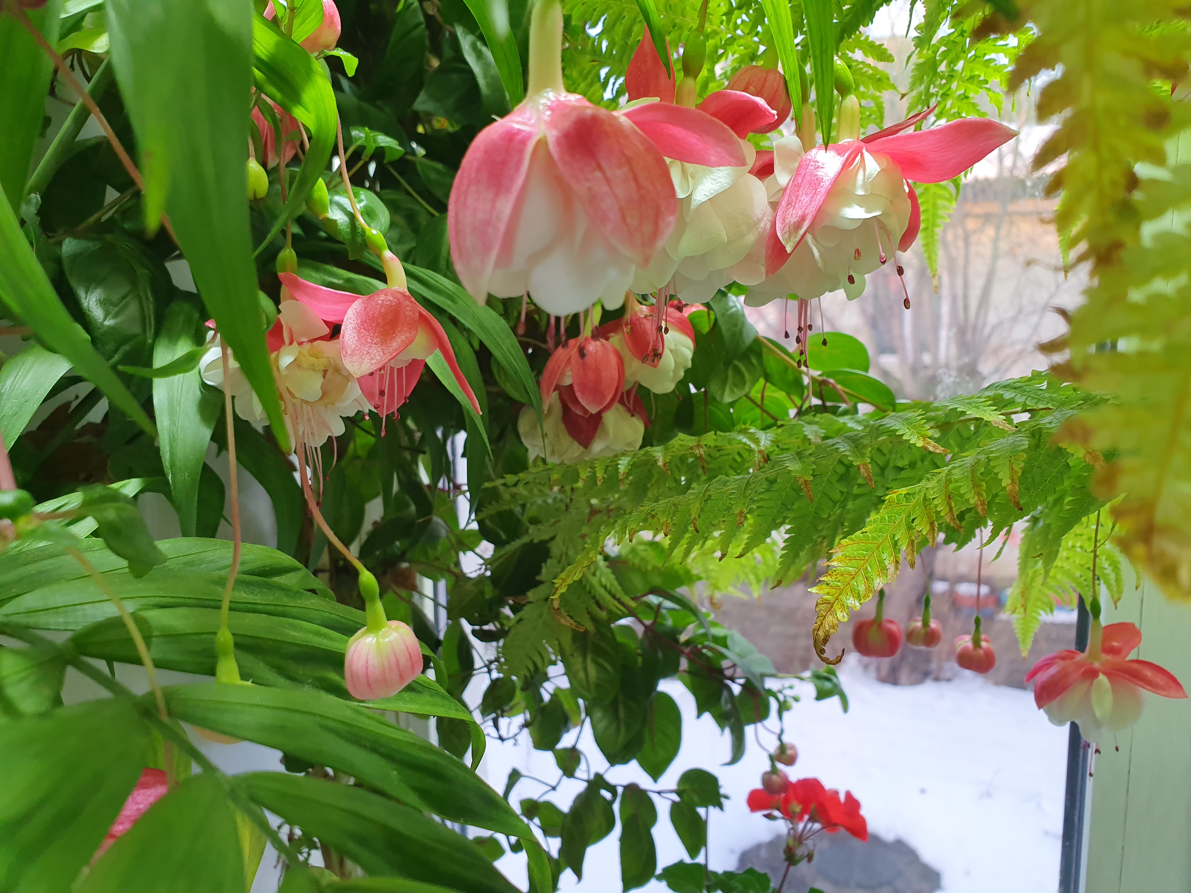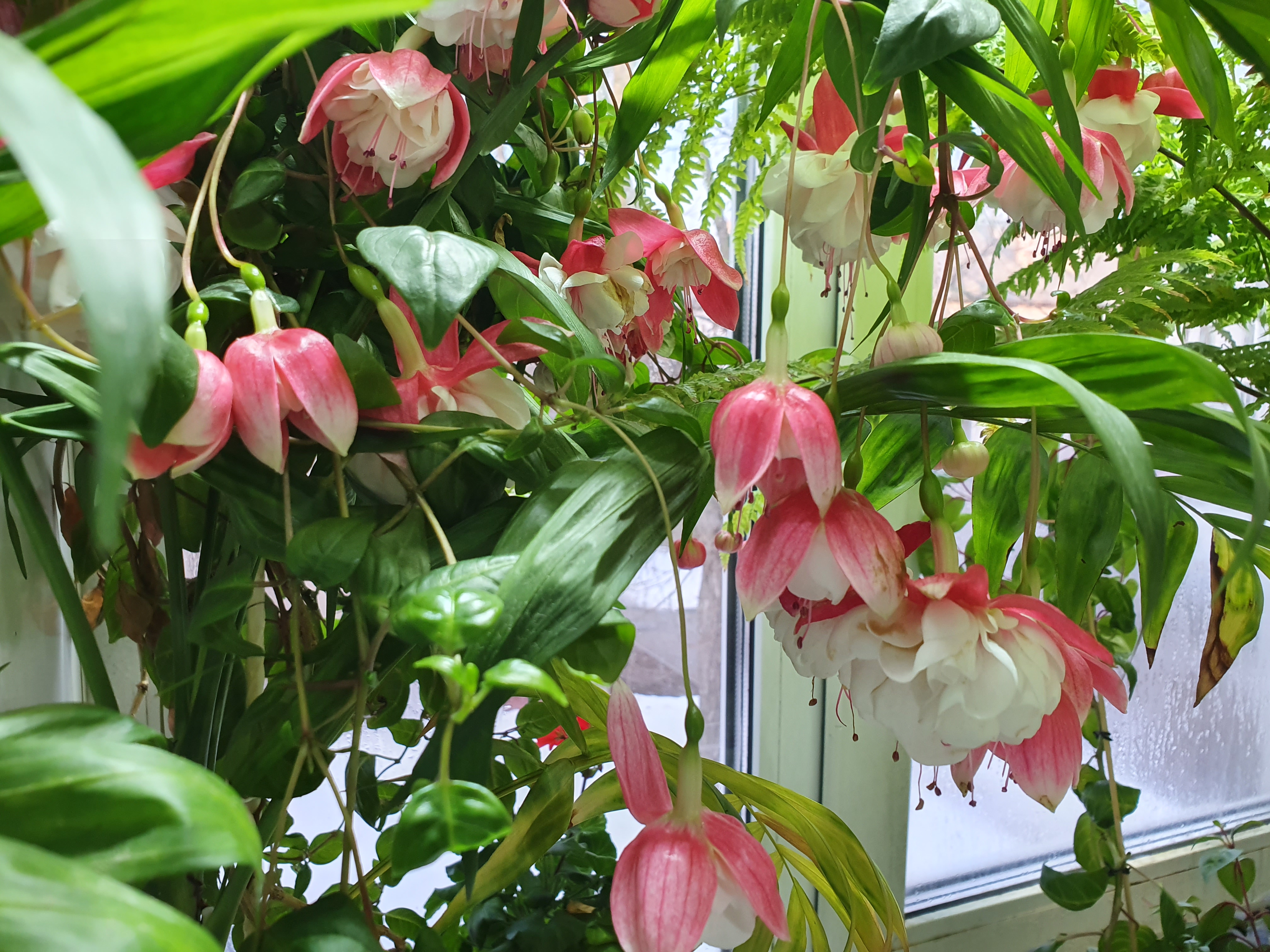 У меня раньше было несколько сортов, зимой я их хранила в погребе, где около 0 С. Фуксии там хорошо перезимовывают, если у них уже есть одревесневшие побеги. Перед закладкой на хранение я у них укорачивала зеленые части побегов, корни засыпала землей.