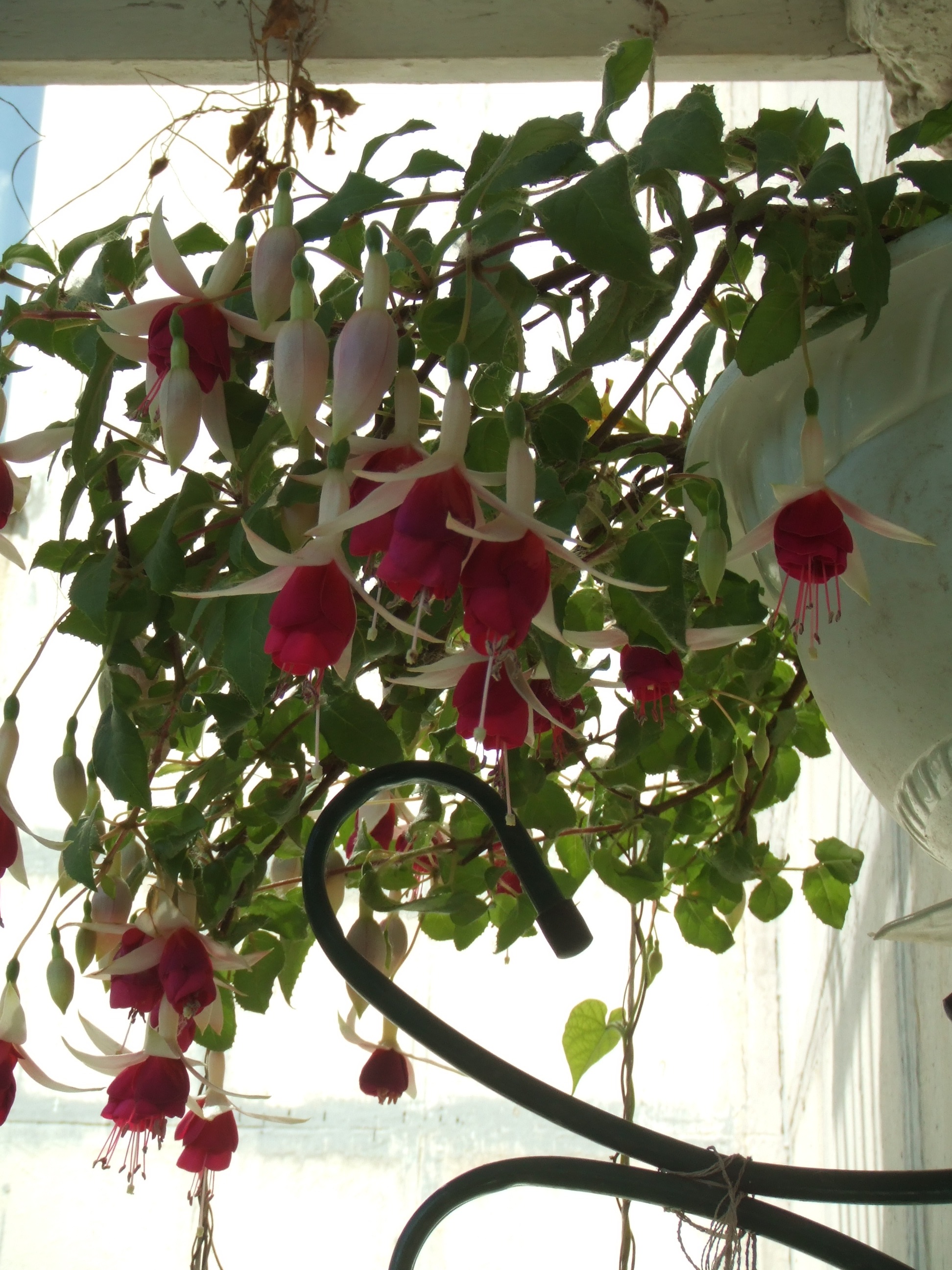 Они хорошо зимовали в погребе. Но потом я для озеленения балкона фуксии заменила на ампельные бегонии. Фуксии, конечно, изысканнее. Но бегонии издали намного ярче и заметнее. Клубни бегоний тоже у меня зимуют в погребе. А из фуксий, как я писала, я оставила только зимующие в ОГ.