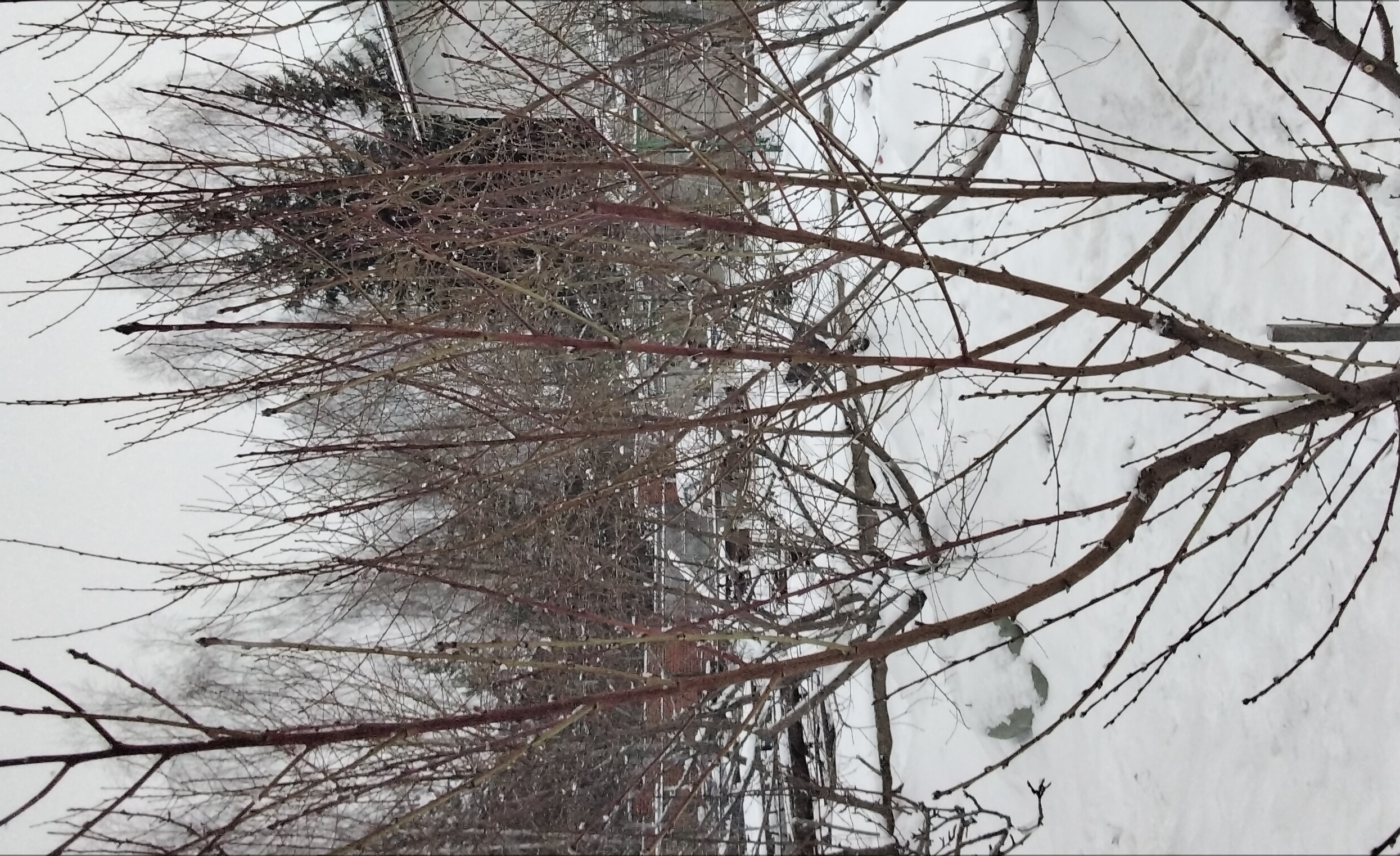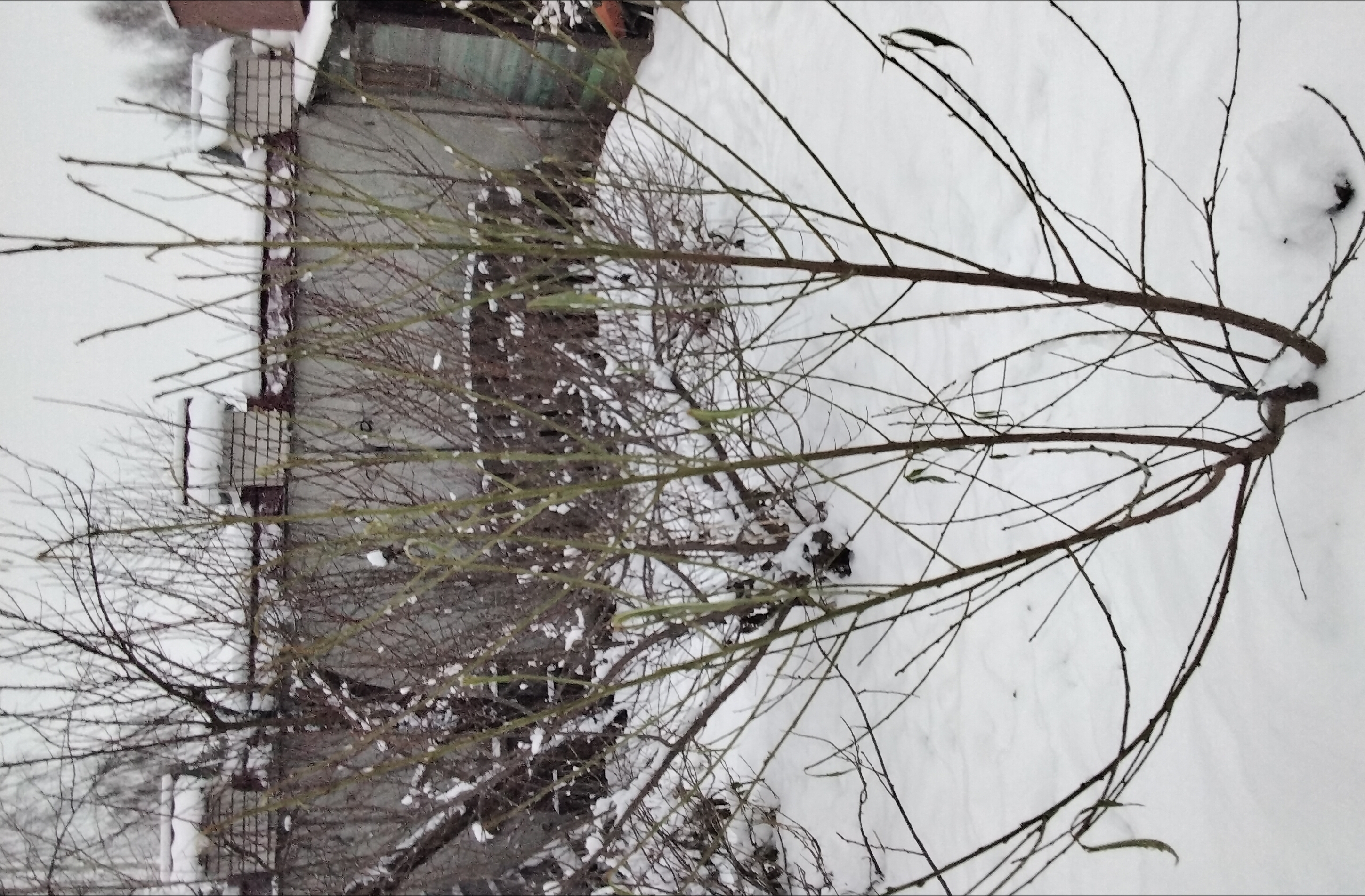 Фото середины февраля, а на переднем плане сеянцы абрикосов без листьев.