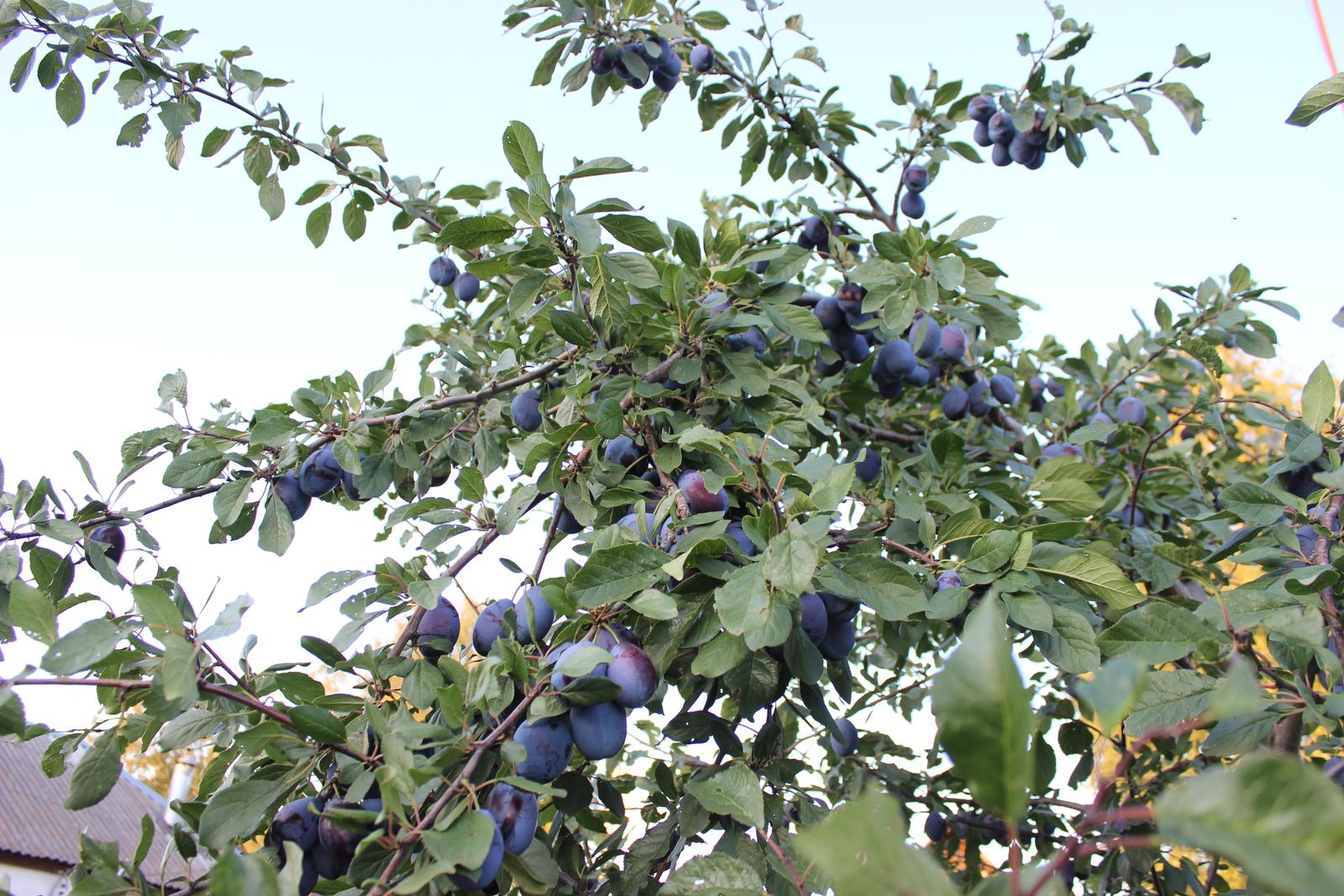Начал потихоньку собирать урожай сливы Стенли. Почему потихоньку? Во-первых, урожай большой сразу не переработаешь, во-вторых - созревание неодновременное. Некоторые сливы переспели и опадают, а большая часть держатся очень крепко.