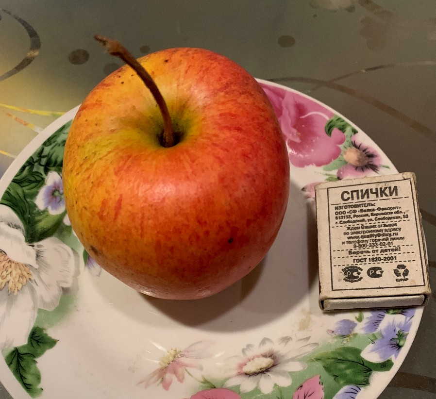 Ханикрисп довольно крупный, но большинство плодов окрашены очень слабо. И эта магазинная Эвелина, на мой взгляд, тоже имеет недостаточный окрас. Даже сигналки моей северной Пиновы выглядят гораздо ярче. Единственное, что её выдаёт - это длинная плодоножка, очень типичная для этих сортов.